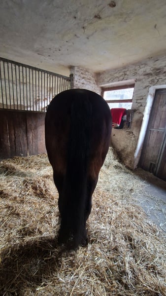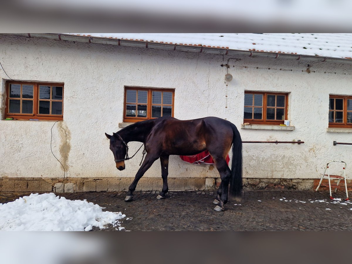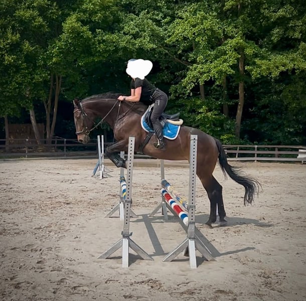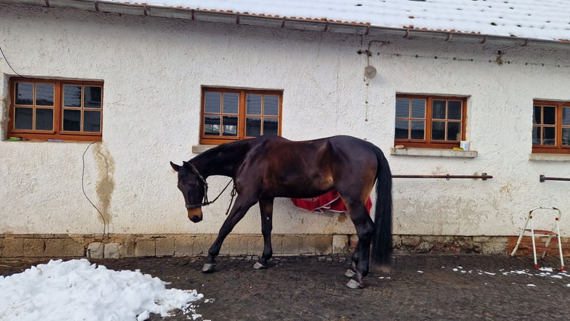 Due to health reasons, I am offering my beautiful mare, who will soon be 16 years old, for sale. I can no longer keep up with her due to my back condition. She was born on March 31, 2010, stands 172 cm tall, and is dark bay. Pedigree: Stakatos Highlight / Damon Hill She may also be of interest for breeding purposes. This decision is very difficult for me, as I have always cared for my horses until their last breath. She is currently ridden by a 15-year-old girl. She enjoys jumping, is motivated, focused, and pulls well to the jump. Has competed up to class E so far. She definitely has potential. She has three very good basic gaits with impulsion, a solid foundation, and correct conformation. Training in dressage includes elementary lessons, traversals, medium trot, shoulder-in, simple changes, and rein-back. She handles terrain well, both alone and in company, without any issues. She is familiar with open stable and box stall management. Gentle in handling. No bucking, rearing, biting, kicking, or headlong rushing. Not suitable for beginners, insecure, or nervous riders. Currently barefoot. Does not cling to other horses. Estrus cycle is unobtrusive. Dressage saddle 17.5" Kentaur Ithaka AP can be purchased if desired. Regularly dewormed, vaccinated, and teeth maintained. I had her X-rayed three years ago before purchase—hock joints (due to chips) and fetlock joints at the rear. No findings. She has no health issues. If seriously interested, I look forward to your inquiry and answering any further questions. Videos can be sent upon request. Price: €6200 VB Contact: 01775284235