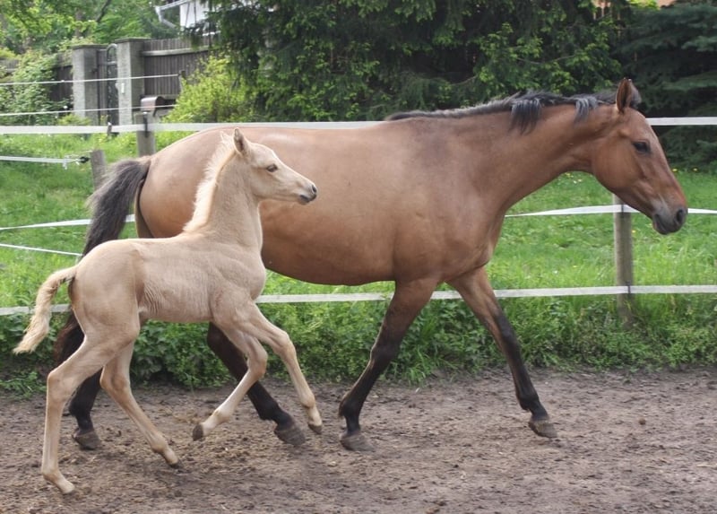 Deutsche Warmblutstute in seltener DUN Aufhellung m.vollem Papier