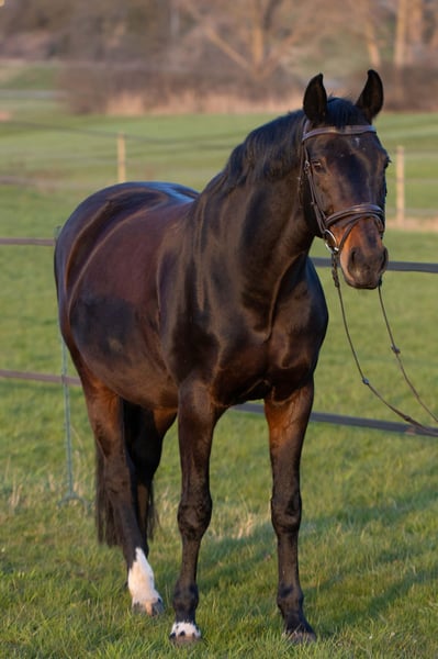 Elegant dark bay mare, born in 2008, with a height of 16.1 hh. This versatile leisure horse impresses with her balanced temperament and reliable nature. She is well-schooled and ideally suited for everyday riding in the recreational sector. With her solid basic training, she is a pleasant companion for both advanced riders and ambitious leisure riders. A true all-rounder, distinguished by her friendly demeanor and dependable foundation. Sunny has been in our riding school for approximately four years, during which she has proven to be reliable in dressage and jumping. She remains calm and balanced in the field. She does not display mare-like attitude. Always friendly and particularly cautious around children. We are seeking a new home for her with a family environment as a loyal leisure partner. She could also be interesting for breeding, as her pedigree includes the renowned stallion Donnerhall and Sandro Hit. No chronic health issues are known. A pre-purchase veterinary examination (AKU) can be arranged and performed by the interested party. If interested, I am happy to provide further information and arrange a viewing. ** To help promote responsible riding tourism, a fee of €30 will be charged for trial riding, which can be deducted from the purchase price.