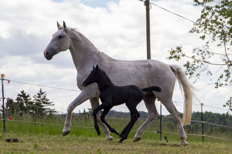 A very attractive, premium-approved jumping mare born on May 14, 2025, is available for sale. She is currently growing up in a large foal herd. Saina is a very elegant, expressive, and curious mare, with a high likelihood of turning gray later on. Her sire, DSP Cashmoaker, is successfully competing at the highest levels of show jumping. Her dam, Samira, impresses not only in dressage and jumping but also as a carriage horse. Please contact me via WhatsApp if interested, as my reception can sometimes be poor. Additional young horses and ponies are also for sale; please see other listings. Imprint: Stefans Reiterhof Stefan Ühlin Oberelend 1 93086 Wörth an der Donau Phone: 0171/1957828