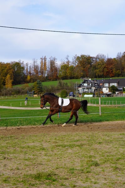 Vienna is a 4-year-old mare by Va' Panciero out of a Duvalier dam. She has been gently in training for a few weeks now, developing into a promising young star. She impresses with her above-average gaits, especially her very active hind leg, and her impeccable character. Vienna comes directly from the breeder and has had the opportunity to develop calmly on the pasture. Thanks to her familiar environment, she is accustomed to everyday life at a riding stable with children, dogs, and tractors. She already willingly allows children to catch her from the pasture, groom, saddle, bridle, and lungeline her. She is also accustomed to rider weight. With her practical height of currently 157 cm and her correct conformation, we see Vienna as an ideal mare for ladies and amateur riders who enjoy training a young horse and aspire to compete in the big arena later on. Price reflects her quality and will increase with her training progress. After sale, Vienna can remain with us for further training if desired.