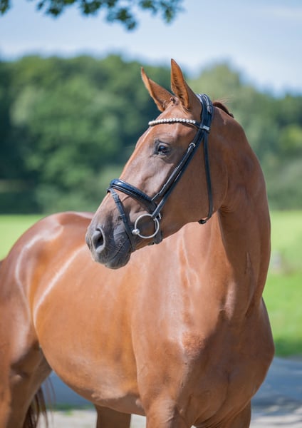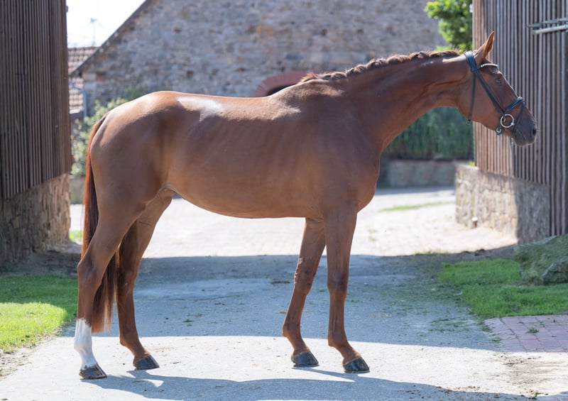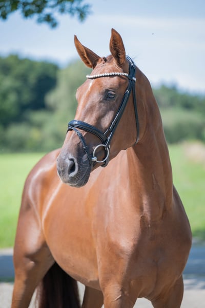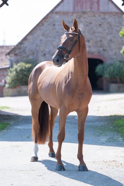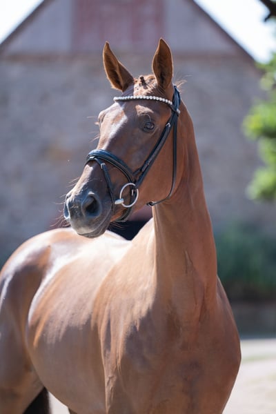 ⚜️zu verkaufen ⚜️ * Stute * 2022 * ca 1,69 m * Revolution/ Descolari * Röntgenbilder vorhanden Qualitätsvolle Nachwuchs-Dressurstute zu verkaufen. Sehr brav im Umgang sowie unter dem Sattel, arbeitsfreudig und angenehm rittig mit genügend Go. Sie kennt das Reiten in der Halle, auf dem Platz sowie im Gelände und zeigt sich dabei stets unkompliziert. Ein tolles Pferd für ambitionierte Reiter, die ein motiviertes Nachwuchspferd suchen. Kleines Manko: Sie koppt gelegentlich, was sie jedoch weder gesundheitlich noch in ihrer Leistungsfähigkeit einschränkt. Wer diese junge Stute kennen lernen möchte, meldet sich gerne unter folgender Telefonnummer 0173 9954104 📞