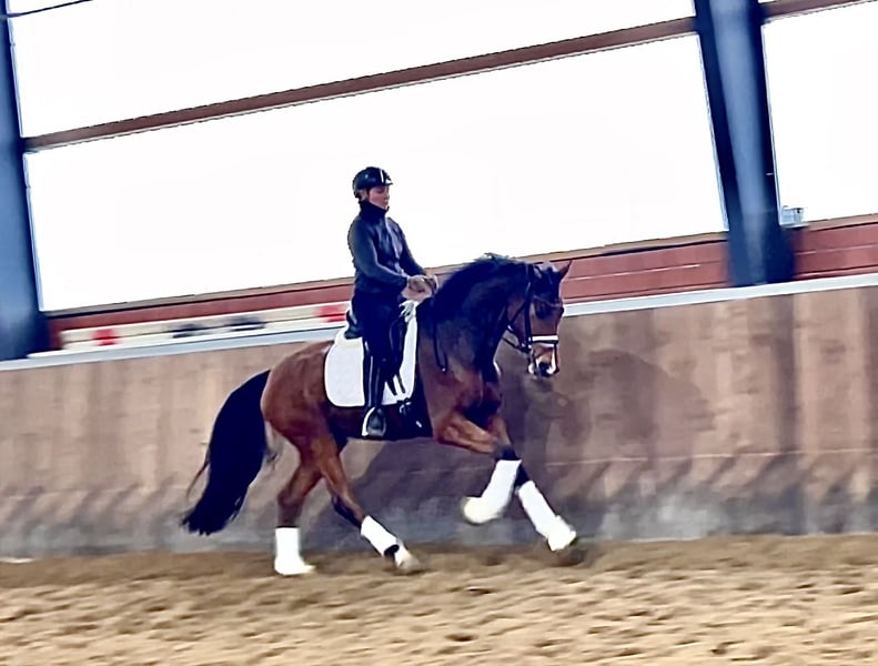 Werbung| ‼️Anfragen ausschließlich über unten angegebene Telefonnummer ‼️ Standort: 49509 Recke | Westf. | Stute | Braun | *2021 | 165 cm | v. De Royal x Rock Forever Bildschön aufgemachte Stute im mittleren Rahmen mit drei sehr überzeugenden Grundgangarten. Die 4-jährige Stute hat neben ihrer unerschrockenen Art und ihrem absolut liebenswürdigen Charakter, ein Exterieur, dass keine Wünsche offen lässt. “Jessica“ durfte bis zum Frühjahr ihre Jugend ausgiebig genießen und wurde dann 4-jährig angeritten. Die Stute ist im Umgang, wie auch unter dem Sattel super brav und einfach zu handeln. Sie überzeugt jeden Tag aufs Neue mit ihrer Arbeitseinstellung und Leistungsbereitschaft. „Jessica“ ist ein sehr vielseitiges Pferd, dass neben ihren positiven Eigenschaften im Viereck, auch am Sprung zu überzeugen weiß. Aufgrund ihres ausgeglichenen Charakters und ihrer unkomplizierten Art unter dem Sattel, eignet sich die Stute auch für Ponyumsteiger oder unerfahrener Reiter. Mit dieser Traumstute stehen ihrem zukünftigen Reiter alle Sparten der Reiterei offen. Ein befundfreier Röntgen-Tüv incl. Rückenbilder liegt vor. Bei ernsthaftem Interesse melden Sie sich gerne telefonisch unter der +491707941333.