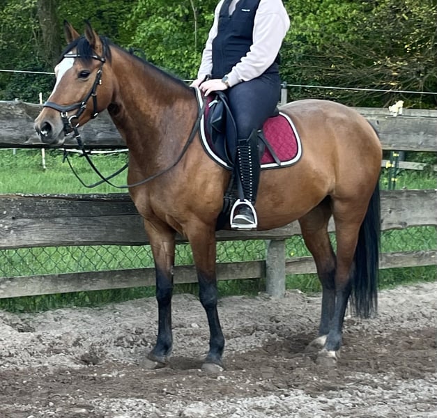 Zum Verkauf steht eine 6-jährige braune Stute mit einem ganz besonderen Charakter. Sie ist äußerst menschenbezogen, verschmust und einfach ein echter Goldschatz. Die Stute ist angeritten und geht sicher in den Grundgangarten Schritt, Trab und Galopp. Aufgrund ihres Fohlens wurde sie erst ab 5 Jahre in der Ausbildung gefördert. sie möchte immer alles richtig machen und wurde sowohl auf dem Reitplatz als auch im Gelände geritten. sie geht sehr gerne ins Gelände und bringt damit beste Voraussetzungen für ausgedehnte Ausritte oder Wanderritte mit. Wir verkaufen sie aktuell als angeritten, da wir ihr zeitlich leider nicht gerecht werden können. Daher wünschen wir uns für sie einen liebevollen und fördernden Platz, an dem sie weiter ausgebildet wird und die Aufmerksamkeit bekommt, die sie verdient. Wichtige Voraussetzungen: Offenstallhaltung mit viel Weidegang Einfühlsamer und verantwortungsvoller Umgang Nur in allerbeste Hände abzugeben Diese tolle Stute eignet sich ideal für jemanden, der ein ehrliches Pferd mit viel Potenzial und Herz sucht. Bei ernsthaftem Interesse freuen wir uns über eine Nachricht.