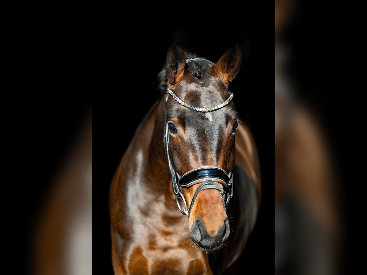 This exceptionally beautiful brown mare impresses with outstanding quality, rideability, and a remarkably clear mind. A horse for riders with high standards, yet one that delights with its honesty and straightforwardness. Her trot is particularly noteworthy—powerful, controlled, and well-engaged through the body. The canter demonstrates great expression, strength, and freedom from the shoulder. The walk is clear and steady in rhythm. Overall, she possesses three very good basic gaits, providing a solid foundation for a reliable and promising dressage education. Under saddle, she is very easy to work with, light in the contact, attentive, and always stays focused on her rider. She remains clear-headed, shows no overreactions, and consistently conveys a sense of security. This combination of quality and reliability makes her appealing not only to less experienced riders but also to well-trained young riders seeking a high-quality young horse. In handling, the mare is absolutely well-behaved, friendly, and trusting. She is personable, affectionate, and uncomplicated in daily handling—simply a horse that one enjoys having around. Her pedigree further underscores her high caliber: she is a direct descendant of Quarterback, with maternal lines tracing back to Sandro Hit and Fidermark. These bloodlines are renowned for rideability, expression, and willingness to perform, having produced numerous successful dressage horses. A very special mare with exceptional quality, versatile in use, suitable for demanding riders as well as ambitious young riders. She is positioned in the upper price segment. Location: Rosenheim