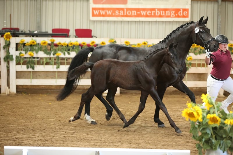 Wir verkaufen schweren Herzens wegen Zuchtumstellung eine äußerst typvolle und bewegungsstarke Staatsprämienstute mit SLP in LK I, Zucht bewährt, bereits ein überragendes Championatsfohlen vom Bon Courage in 2025 und aktuell ein Hengstfohlen von Kjento bei Fuß. Die Stute ist reinerbig dunkel und bringt somit keine Füchse. Aktuell ist sie besamt von Fenomenal für 2027. Die Stute kann sowohl mit als auch ohne Fohlen erworben werden. Ideal auch für Zuchtanfänger, absolut unkompliziert im Umgang, gibt ihren traumhaften Charakter an die Fohlen weiter. Es gibt kein Video und es wird auch keins angefertigt. Bei Interesse freuen wir uns über Kontaktaufnahme. Die Stute ist voll reitbar und war sehr rittig, müsste allerdings wieder an trainiert werden. Wir verkaufen sie jedoch bevorzugt an Züchter da sie in der Mutterrolle voll aufgeht