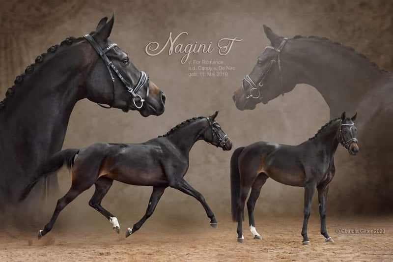 We are selling this exceptional, typey and movement-rich State Premium mare with SLP in LK I due to a change in breeding focus, and it is with a heavy heart. Her breeding is proven, as she already produced an outstanding champion foal by Bon Courage in 2025, and currently has a colt by Kjento at her side. The mare is homozygous dark, so she will not produce foals with a chestnut coat. She is currently inseminated with Fenomenal for 2027. The mare can be purchased either with or without her foal. She is ideal also for novice breeders, as she is very easy to handle and passes on her wonderful temperament to her foals. There is no video available, nor will one be made. Interested parties are welcome to contact us. The mare is fully rideable and was very well-behaved under saddle, though she would need to be re-trained. We prefer to sell her to a breeder, as she thrives in her role as a dam.