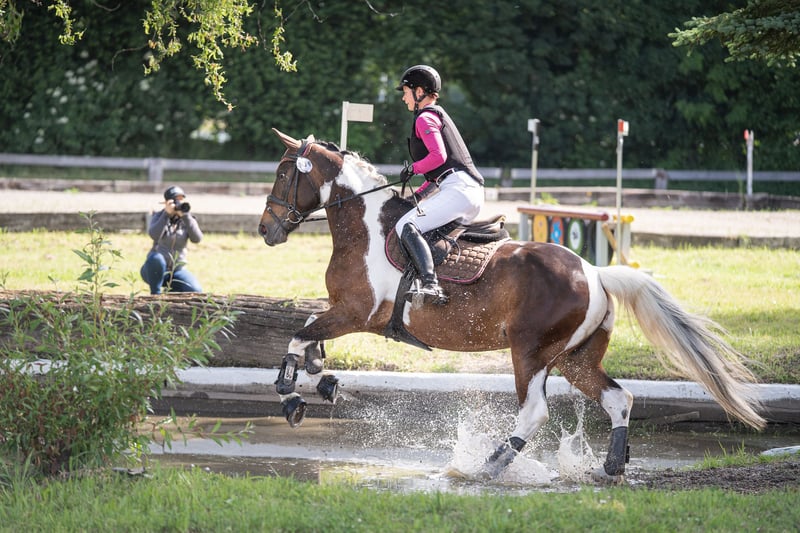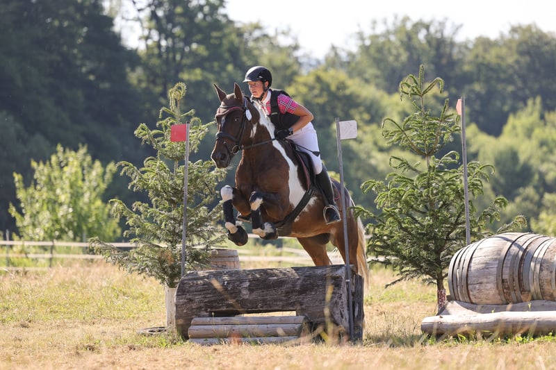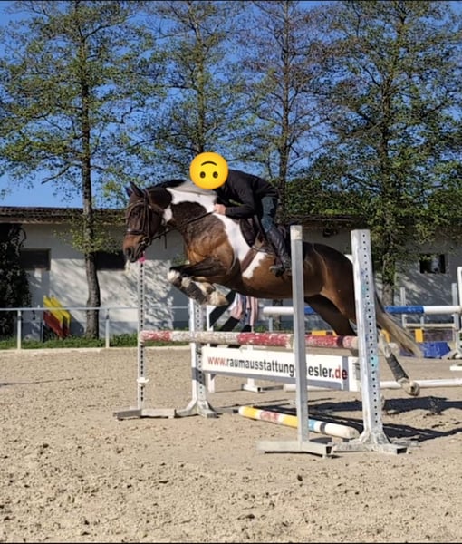 German Riding Horse – Versatile Pinto Mare For sale is a beautiful pinto mare named Roxy (Duke's Coloured Symphony), born in 2016. With a height of 164 cm, she is the ideal partner for versatile riding activities and is suitable for both leisure and competition. Roxy impresses visually with her striking pinto coloration and her friendly disposition. She is well and, above all, realistically trained and shows great promise in eventing and dressage. Her balanced temperament makes her interesting for both experienced riders and ambitious newcomers. The mare is very well-behaved in handling, always manageable, and has already gained experience on all stages. This season, she was introduced to competition and surprised us with her incredible confidence, calmness, and willingness to perform. She won all 5 cross-country tests with excellent scores ranging from 8.0 to 8.6 and is now ready to excel in the upcoming season in the VA! She has also been awarded up to 8.0 in show jumping and A-level dressage. In show jumping, she has never refused and always wants to jump, whether it's water, ditches, trakehner, colorful obstacles, or fluttering banners. She has inherited the heart and incomparable attitude of her mother, Campari, and the athletic constitution of her father, the successful eventing stallion, DUKE OF HEARTS XX. She is healthy, regularly vaccinated, dewormed, and well-behaved for the farrier and loading. Roxy is very dear to me, and I want her to be placed in a loving home. It is very important to me that she continues to be developed realistically and fairly, with fun, joy, and fairness for this wonderful horse.