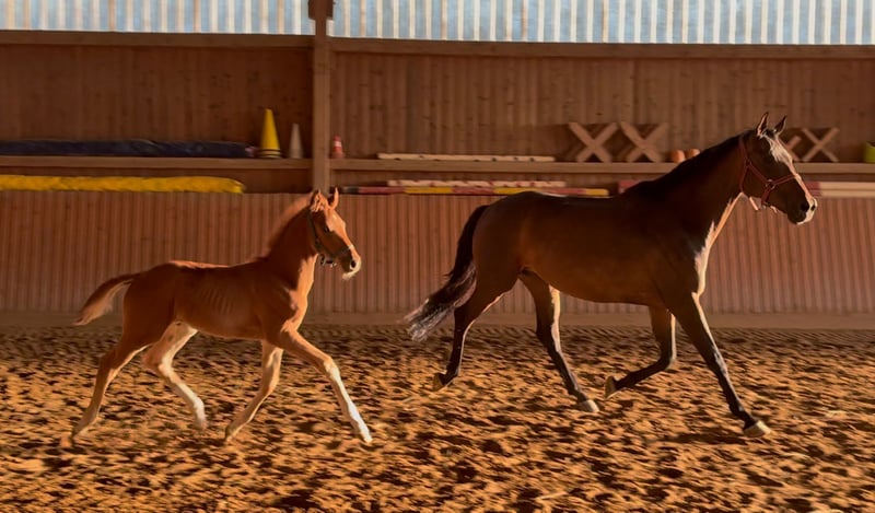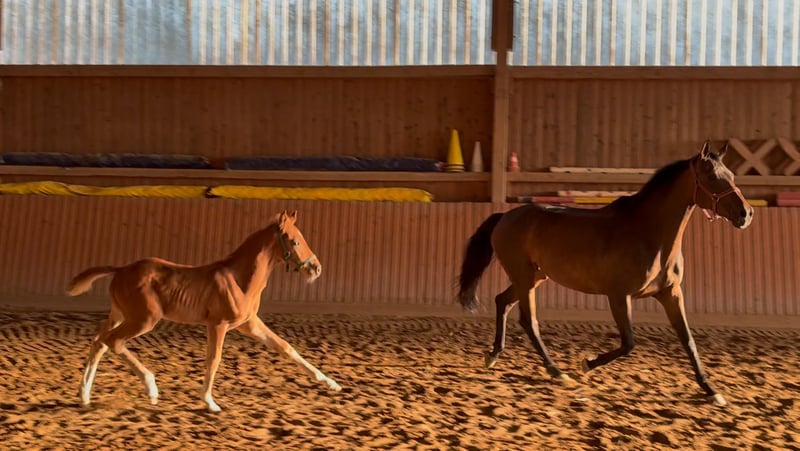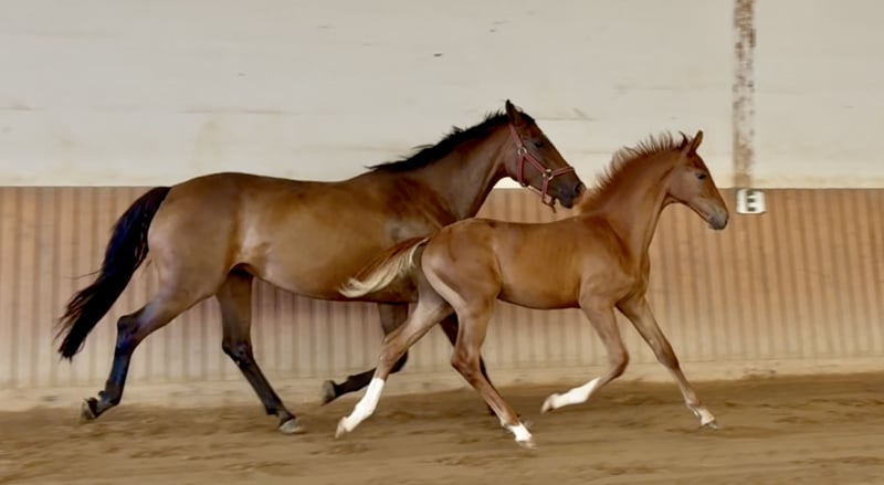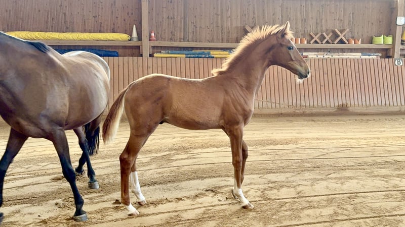 Zum Verkauf steht ein vielversprechender Hengst aus dem Jahr 2025. **Merkmale:** - Rasse: Deutsches Reitpferd - Farbe: Fuchs - Disziplin: Dressur Seine lange elegante Halsung und langen Beine machen ihn jetzt schon zu einem Blickfang. Er ist brav im Umgang, gut erzogen und zeigt 3 hervorragende Grundgangarten. El Dorado hat ein freundliches Wesen, neugierig und beherrscht das Fohlen ABC. Bei Interesse oder für weitere Informationen stehe ich Ihnen gerne zur Verfügung. Besichtigungen sind nach Absprache möglich. Wir freuen uns auf Ihre Nachricht!