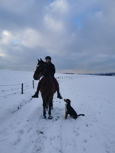 Hallo ihr lieben, ich bin’s Curti 🐴, meine Besitzerin hat leider nicht mehr so viel Zeit für mich, wie ich brauche und mir wünsche und daher sucht sie für mich ein liebevolles, neues Zuhause. Ich bin 11 Jahre alt, ein deutsches Reitpferd und eine echt coole Socke. Dressur und Springen laufe ich auf A-Niveau, wobei Springen eher nur noch gymnastizierend und nicht zu oft gemacht werden sollte (Zufallsbefund hinten links, gerne mehr Infos auf Anfrage). Ich freue mich über jede Art der Zuwendung und mache jeden Quatsch mit, ob Halle, Platz, Gelände, Freiarbeit, Doppellonge, einfach nur putzen, mit Sattel, ohne Sattel, Kinderreiten…. Gerade bin ich in Pause, es spricht aber nichts dagegen, sofort wieder loszulegen und ich bringe auch gerne einen passenden Sattel und Trense mit 😊 bei weiteren Fragen gerne eine Nachricht an 015168845305 schreiben.