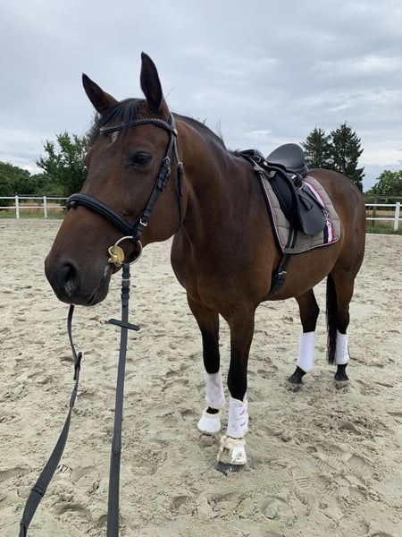 Verkaufe deutsches Reitpferd – eleganter Brauner Wallach, geb. 2013 Schweren Herzens und aus gesundheitlichen Gründen der Besitzerin suchen wir ein tolles liebevolles Zuhause für unseren Funny. Dieser charmante Braune Wallach ist ein echtes Allround-Talent. Mit einem Stockmaß von 165 cm bietet er die perfekte Größe für ambitionierte Reiter, die Wert auf Qualität und Leistungsbereitschaft legen. Der gut gerittene Wallach überzeugt durch seine angenehme Grundgangarten, seine aufmerksame Art. Er ist fein im Maul und mit einer harmonischen Grundausstrahlung ausgestattet. Seine solide Grundausbildung macht ihn zu einem idealen Partner in der Dressur, beim Springen oder im Freizeitbereich. Funny ist gesund und wurde regelmäßig geimpft, entwurmt und dem Zahnarzt vorgestellt . Er ist sowohl für den ambitionierten Freizeitreiter als auch für den Turnierreiter geeignet, wobei wir uns ein neues Zuhause ohne Turnierambitionen wünschen. Funny steht zur Zeit in einer kleinen Wallachherde mit ganztägigen Auslauf und abends Box. Bei Interesse freuen wir uns auf Ihre Kontaktaufnahme, um weitere Details zu besprechen und einen Proberitt zu vereinbaren.