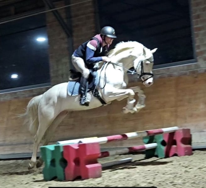 Are you looking for something special—a horse that impresses not only with performance but also with its extraordinary appearance? With this stunning gelding in noble Cremello color, you’ll find exactly what many seek—and few find. Milky, 4 years old, is an exceptionally personable and charming gelding who immediately captivates with his friendly nature. In daily work, he demonstrates motivation, willingness to learn, and a consistent effort to do his best. He particularly shows his talent in jumping: With plenty of scope, awareness, and joy, he has excellent potential for a successful future in show jumping. However, Milky also continues to develop in dressage and displays a lovely rideability. He enjoys hacking out in the countryside just as much—a true all-rounder with heart and intelligence. If you're searching for a reliable partner in an extraordinary rare color—whether for sport or leisure—Milky will be a loyal companion for life. We look forward to your call if you're interested!
