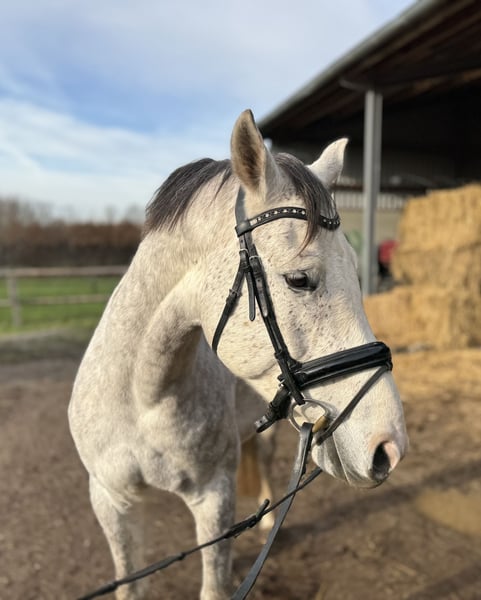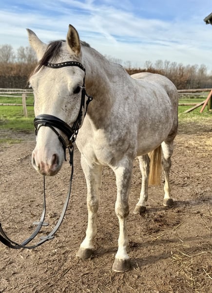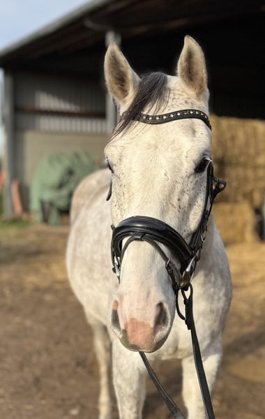 *** Please send inquiries via WhatsApp to 017624297968 *** Dabrio is blind in one eye, which makes him very attractively priced. He is completely unrestricted, very well-behaved in handling, and very compatible with other horses. Dabrio has been lunged but not yet ridden. He is currently kept in an open stable with other geldings and is barefoot.