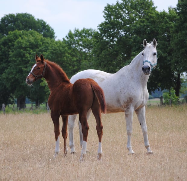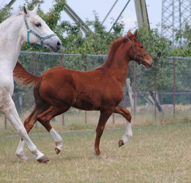 Jako zwiastun wiosny kolorowy lis otworzył tegoroczny sezon źrebiąt. "Mon Ami" Le Chevalier i Marjellchen v. Marduc zaskoczyły wszystkich. Co za mocny fundament, co za doskonałe mocowanie szyi, a następnie ogromny rozmiar. Z energią życiową w kilka minut po urodzeniu na nogach i na wymieniu, więc pierwsze wrażenia. Po dwóch dniach najmłodszy syn 20-letniej córki Marduc poszedł o jeden lepiej na swoim pierwszym spacerze, w którym pokazał ruchy najwyższej jakości. Galop pod górę, który zasługuje na to oznaczenie i akcentowane kolana momenty kłusowania, które sprawiają, że wiele można się spodziewać. Oczywiście koneserzy od razu rejestrują pożądany chów wsobny na naszym byłym głównym reproduktorze Marduc, co przyniosło tu widoczny sukces. Marjellchen, która otrzymała nagrodę stowarzyszenia na ZfdP jako federalna klacz wystawowa w Altefeld, będzie prawdopodobnie jedną z ostatnich aktywnych córek hodowlanych Marduca. Jej syn "Mon Ami" jest obecnie zarejestrowany jako niemiecki szlachetny koń krwi w ZSAA. Z niecierpliwością czekamy na ocenę. Niezwykłe jest jego wielkie podobieństwo do ojcowskiego przyrodniego brata Lamiro, którego niestety musimy wychowywać bez matki.
