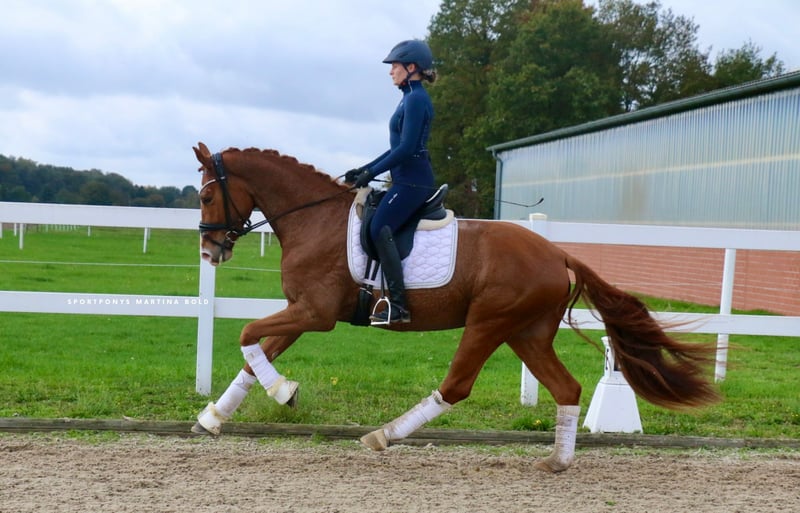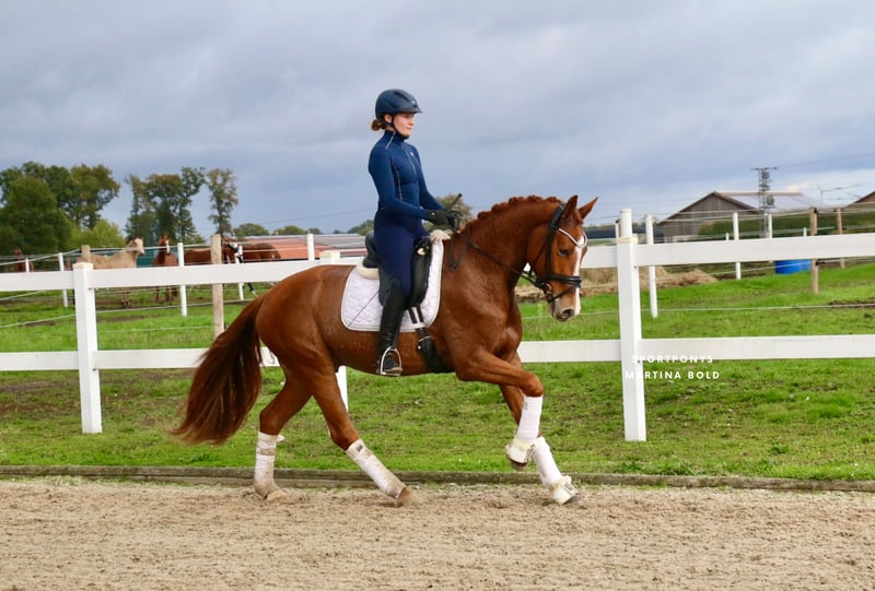 | Advertisement | Location: Recke, 49509 | Hanoverian | Gelding | Chestnut | Born 2021 | 16.1 hh | Sired by Ellis out of Zack We present "Edgar," a promising young sport horse for the grand arena. Besides his attractive appearance, Edgar is equipped with three convincing basic gaits. He spent the summer months enjoying time on the pasture and in the herd, only coming under saddle as a four-year-old. In handling, Edgar is absolutely well-behaved and affectionate. Under saddle, he learns very quickly and strives to please his rider. Even from Edgar’s pedigree, one can expect rideability and willingness to perform. He descends from a line of highly successful sport horses on both sides: his sire Ellis, his dam’s sire Zack, and Don Schufro on the dam’s side, all renowned for their own achievements and their successful offspring. With further development, we see Edgar as a future candidate for advanced dressage. https://youtu.be/EaYYLbF4kfI?si=nuyl2l09oIoVHyVC A radiological examination (X-ray) report is available and shows no abnormalities. For serious inquiries, please contact us by phone at +49 170 7941333.