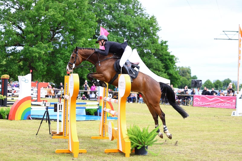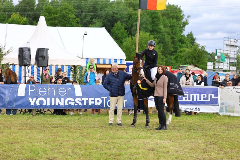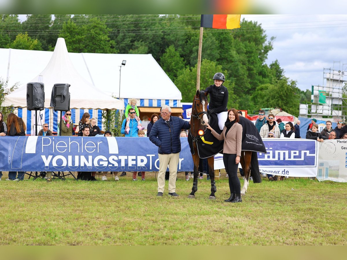 The 5-year-old gelding has had great success this season under several riders. He has qualified multiple times for the Bundeschampionat of 5-year-old show jumpers with different riders. He was the state champion among 5-year-old show jumpers and won the Piehler Youngster Tour for 5-year-old show jumpers. He is very rideable and absolutely uncomplicated to handle, making him well-suited for amateurs. His grandmother competed successfully up to S*** level. Other horses from the mare line are also successful in show jumping at the S* and S** levels. His father "Diarado" is one of the most significant show jumping sires worldwide and has a multitude of successful offspring.
