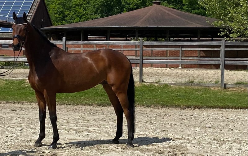 Dressurwallach-7 Jahre jung -ca1,75 m- siegreich in DPF L Großrahmig, Sportlich moderner Wallach mit drei sehr guten Grundgangarten ausgestattet. Dieses Nachwuchspferd bringt tolle Möglichkeiten für den Reiter mit, der ihm noch etwas Zeit geben möchte bis er mit seinem großen Körper im Einklang steht… Auf Turnier zeigte er sich unerschrocken ist im Umgang ein wahrer Schatz! Schmiede und verladefromm. Ein Pferd mit viel Perspektive für die Zukunft!