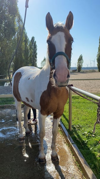 Unsere liebe Polly ist ein echtes Herzenspony und sucht aus privaten Gründen ein neues Zuhause. Sie ist 19 Jahre alt, eine charmante Scheckstute und war immer gesund und fit. Polly bringt viel Freude an der Arbeit mit – ganz gleich, ob bei der Dressur, beim Springen, bei Ausritten im Gelände oder sogar ohne Sattel. Sie ist brav, motiviert – ein zuverlässiger Allrounder mit viel Erfahrung. Ob für Jugendliche, kleinere Erwachsene oder als Familienpony – Polly ist eine treue Begleiterin, die einfach Spaß macht. Da uns ein liebevolles Zuhause wichtiger ist als der Preis, geben wir sie für 2.500 Euro in allerbeste Hände ab.