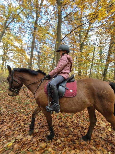 Zum Verkauf steht unser Pony Wallach Jack . Er ist ein robuster Kerl und geht am liebsten ins Gelände . Wir sind mit ihm kleine Sprünge (bis 70cm ) gesprungen . Er wurde von meiner Tochter( 13 Jahre ) geritten . Jack ist ein Pony was seine Arbeit gern hinterfragt und deswegen kein KINDERPONY ist . Er brauch jemanden der konsequent ist und das schafft meine Tochter reiterlich nicht . Am Anfang ist er meist etwas Skeptisch und zurückhaltend . Er steht bei uns im Offenstall , bei weiteren Fragen gern eine Nachricht schreiben LG Nadine