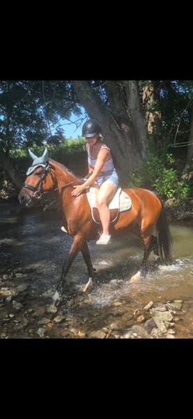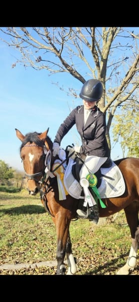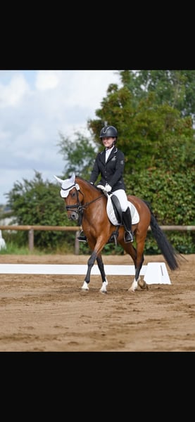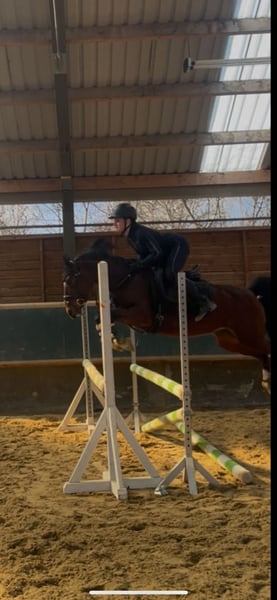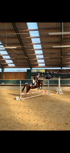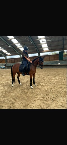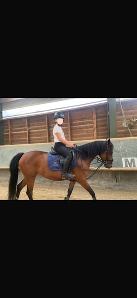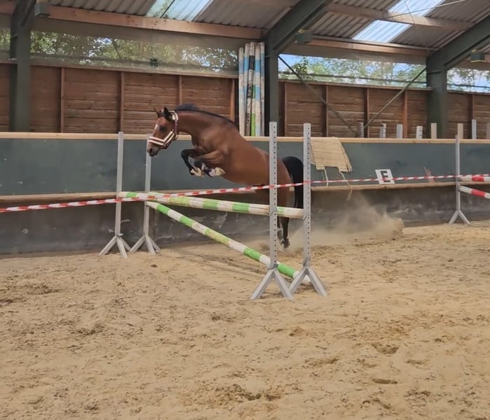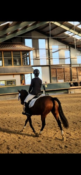 With a heavy heart, a talented pony mare with an excellent temperament is for sale, bringing her owner daily joy. She is not suitable for beginners but is looking for an experienced rider who can provide regular, varied training. The pony derives great pleasure from jumping and shows clear potential in this discipline. She is also very eager to learn in dressage, attentive, and quickly grasps new movements. She works with motivation and displays a positive attitude towards her work. Additionally, she is well-behaved and reliable in the field. She is seeking a person who can engage with her daily, whether through riding, groundwork, or other stimulating activities. Regular exercise and training are important to her, as she enjoys being challenged and learning new skills. Last year, she competed in her first competitions and handled this new experience with patience and calmness very well. She proved to be well-behaved, eager, and receptive to learning. An additional highlight is that she was awarded as a foal and recognized as a champion foal, which underscores her quality and makes her also appealing to breeders who value good conformation and promising development.