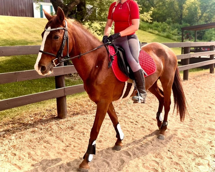 Elegant German Riding Pony Mare for Sale Discover this beautiful chestnut German Riding Pony mare, born in 2016, standing at 14.1 hands. With her charming presence, she is an excellent choice for riders seeking a partner who’s willing to keep going! She doesn’t seem to ever get tired. She’s been started in OF and dressage work and dabbling in some trails. She offers smooth, comfortable rides and a responsive demeanor. Whether you're aiming for local shows or are on the more competitive side, this mare is ready to meet your goals. Don’t miss the opportunity to welcome this lovely pony into your family!