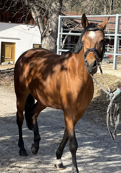 Vente d'une jument de poney de sport allemande Nous proposons à la vente une élégante et talentueuse jument de poney de sport allemande, née en 2016. Elle est baie et mesure 146 cm au garrot. Cette jument est idéale pour le dressage et se distingue par sa finesse, sa volonté d'apprendre et son caractère agréable. Elle est bien dressée, fiable en manipulation et montre un potentiel important pour un cavalier ambitieux. Que ce soit pour la compétition ou pour la promenade, cette jument est une partenaire fiable. Pour toute question ou pour organiser une visite ou un essai, n'hésitez pas à me contacter. Les visites et les essais peuvent être réalisés sur rendez-vous.
