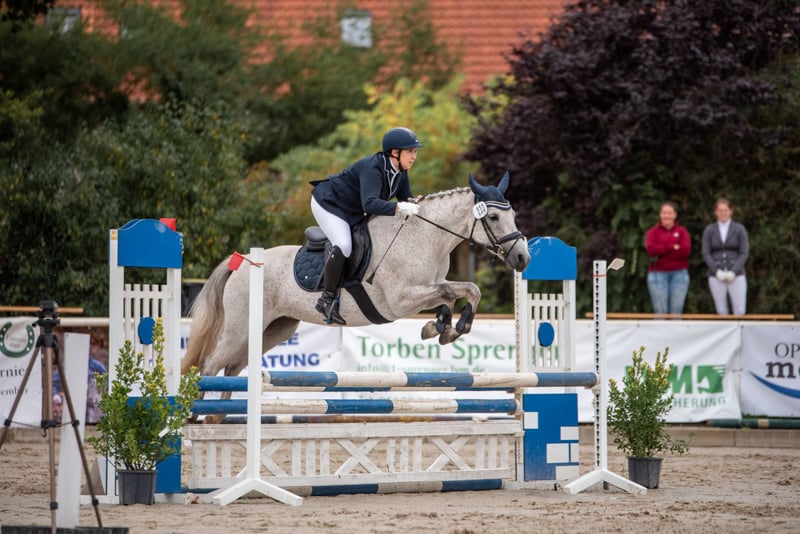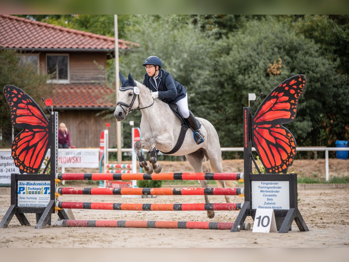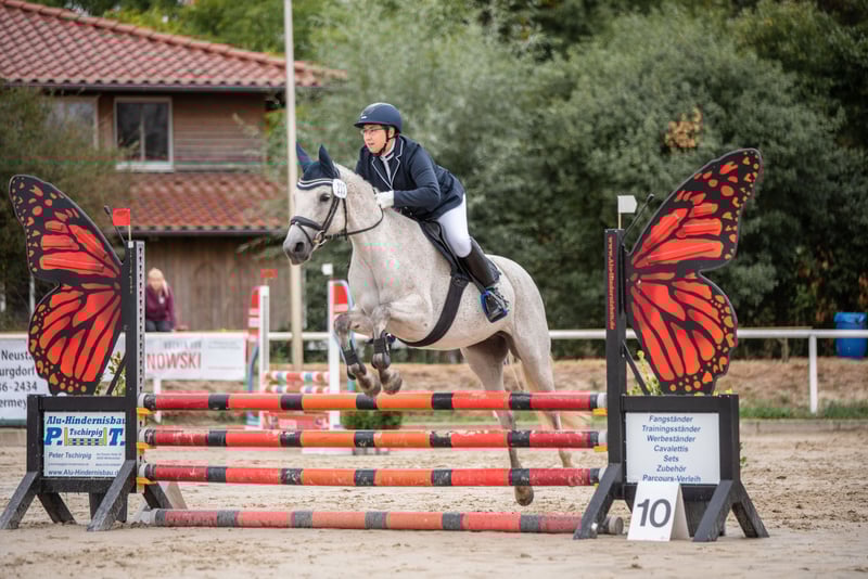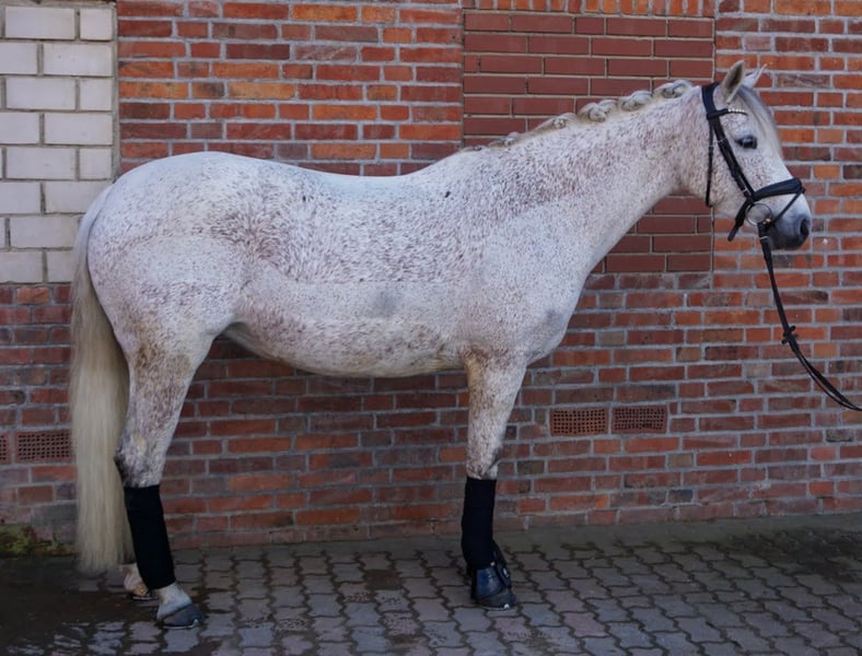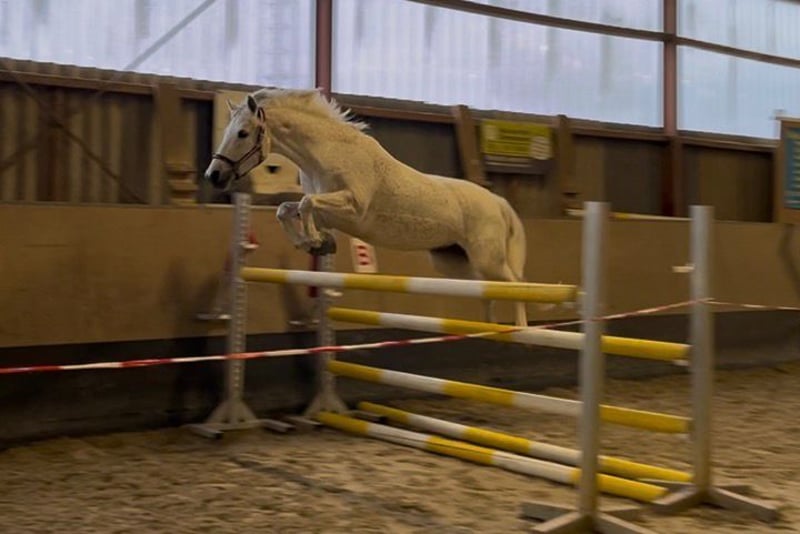 Zum Verkauf steht unsere charmante und leistungsbereite Reitpony-Stute Tine. Die 10-jährige Schimmelstute ist mit 1,48m eingemessen und stammt ab von Del Piero aus einer St. Annens Monsieur N-Mutter. Tine bringt beste Voraussetzungen für den Springsport mit und ist sofort auf Turnieren einsatzbereit. Tine ist brav, motiviert und sehr arbeitswillig. Sie verfügt über gute Grundgangarten, ist lernwillig und zeigt im Springen ihre große Stärke, dabei ist sie immer mutig, ehrlich und hat viel Übersicht. Aktuell ist sie sicher auf A*-Niveau ausgebildet. Zwei Starts, zwei Schleifen. Bei ihren bisherigen zwei Starts im E-Springen wurde Tine direkt beide Male platziert. Ihr tatsächliches Potenzial liegt jedoch deutlich höher, was sie besonders im Freispringen zeigt.. Auch dressurmäßig ist sie sicher auf A-Niveau ausgebildet, mit ersten Lektionen auf L-Niveau. Im Gelände zeigt sie sich ebenfalls brav und motiviert und ist somit auch für die Vielseitigkeit interessant. Ihre enorme Nervenstärke und Vielseitigkeit hat sie bereits mehrfach unter Beweis gestellt: Ein Highlight ist ihre Teilnahme mit der niedersächsischen Reitponyquadrille mit Auftritten u. a. beim CHIO Aachen, Hamburger Derby und weiteren großen Veranstaltungen. Reiturlaub oder Tagesausflüge ins Watt oder Wald und Wiese, mit Tine, kein Problem. Man kann sie an jeder Position ohne Probleme reiten. Eine Schritt Voltikür für die Weihnachtsfeier hat sie sehr brav absolviert. Es wurde zu zweit auf Ihr geturnt. Im Umgang ist Tine unkompliziert, verlade- und schmiedefromm und dabei typisch Pony – manchmal etwas frech, aber immer charmant. Tine ist kein Anfängerpony, sie benötigt einen sicheren, konsequenten Reiter. Mit weiterer Förderung ein echtes Toppony! Wir wünschen uns für sie ein liebevolles förderndes Zuhause, idealerweise springbetont. Verkauf nur an Privat Zubehör kann mit erworben werden. Hinweis zum Probereiten: Um Reittourismus zu vermeiden und im Sinne des Tierwohls, berechnen wir für das Probereiten eine Gebühr in Höhe von 50 €. Diese wird bei einem anschließenden Kauf selbstverständlich verrechnet.