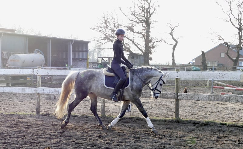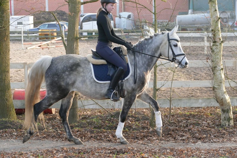 Susi ist eine hübsche Reitponystute die mit drei sehr guten Grundgangarten ausgestattet ist. Sie wurde erst spät angeritten und daher müsste sie noch weiter ausgebildet werden. Bei uns wird sie von jugendlichen Reitern geritten und lässt sich brav in allen drei Grundgangarten reiten. Von Haus ist sie mit einem guten Go ausgestattet und daher nichts für Anfänger. Ausritte hat sie ebenfalls schon mehrfach sehr brav gemeistert und hat total Spaß daran. Im Umgang ist sie stets gelassen und artig. Bei weiterer Ausbildung könnte ich sie mir auch gut als Turnierpony vorstellen da sie Potenzial für Dressur und Springen mitbringt