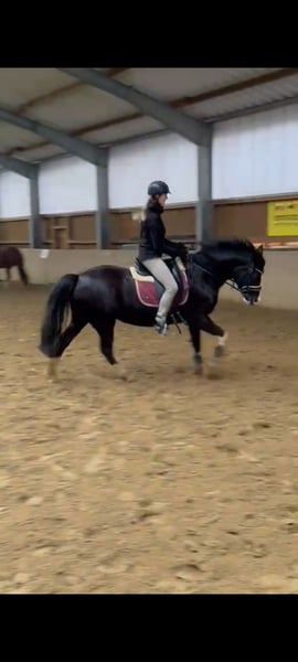 After careful consideration, I am looking for the right person for this beautiful black mare. Charisma is 10 years old and has been with me since weaned. She had a top-quality foal, has been on camping holidays with me, and is trained up to A-level dressage. Due to my full-time job and caring for two other ponies on my own, I need to part with one pony. She is simply too precious to spend most of her time standing around. Although she does everything with me—dressage, jumping, ground work, hacking alone and with a partner, competitions—she is not a pony for everyone! Sometimes she is very cool and can confidently navigate unfamiliar terrain for two hours, even for a 75-year-old rider. Other times, she can be spooky and easily startled. Therefore, a rider with plenty of experience and a secure seat is essential. She is happy to stay in her box at night and in the open stable during the day. In summer, she is on pasture 24/7. She is barefoot and can also be ridden in hoof boots when needed. Ideally, I am looking for an adult person who wants to continue her education without overwhelming her. She works very willingly and wants to do everything correctly. Although she is a XXL pony with a strong build, she is definitely NOT a load carrier. (She is well covered; I am 1.77 m tall.) Loading, hoof care, and handling are all easy with her. If you have enough horse experience, please get in touch. We can discuss everything further over the phone. Pedigree: From PAV Nutrix (Nemax x Benetton S), out of Zöthens Carina (Nitendo x Koyano x Ergano) Please contact me preferably via WhatsApp: 0174 4468951 Kerstin Lütge P.S.: SPACE BEFORE PRICE!