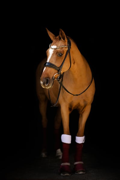 MAC Dona is well-behaved during grooming, with the farrier, and during transport. Currently working at A level in dressage and learns very quickly. She is very pleasant to ride. She has a clean X-rays