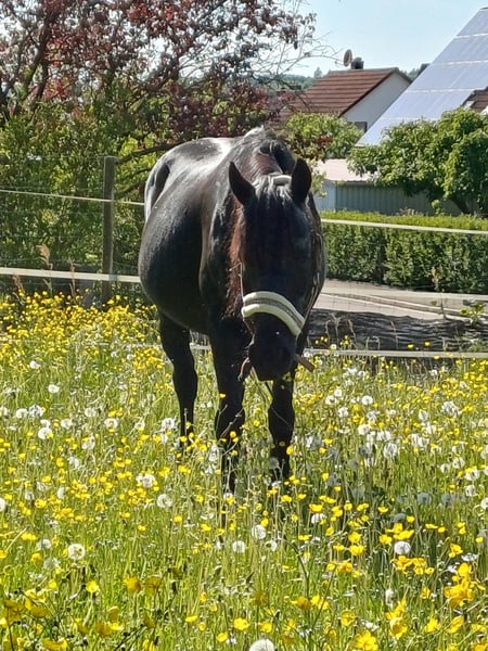 Dior ist 12 Jahre, sie kennt Kinder, Hunde, Traktoren, Schafe, Hühner und ist schmiedefromm. Sie ist jetzt drei Jahre bei uns und stand davor in einer Reitschule. Wir geben sie nur aus gesundheitlichen Gründen meinerseits ab. Sie selber war bei uns immer gesund und hat unsererseits keine bekannten Vorerkrankungen. Sie steht im Moment bei uns am Haus in einem Ofenstall mit einer Kaltblutstute zusammen. (Diese biete ich hier auch an) Bei uns ist sie sowohl auf dem Platz von unserer Tochter, als auch als Handpferd oder in Zweiergruppe im Gelände geritten worden. In der Reitschule, wo sie vorher war, ist sie auch alleine im Gelände geritten worden. Bei Interesse einfach melden und Termin zum Anschauen und kennenlernen ausmachen.
