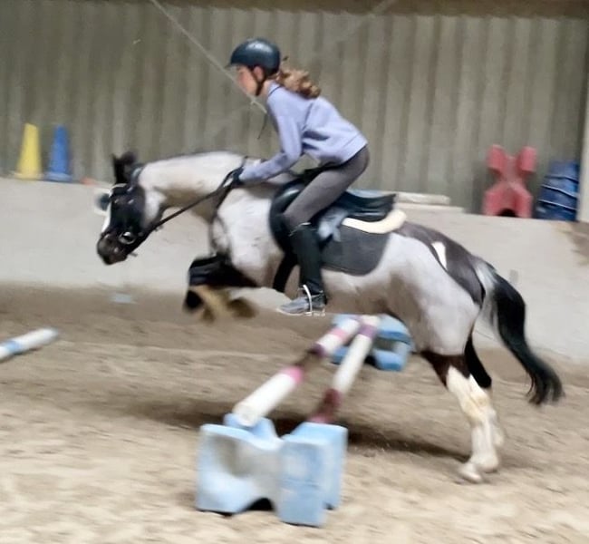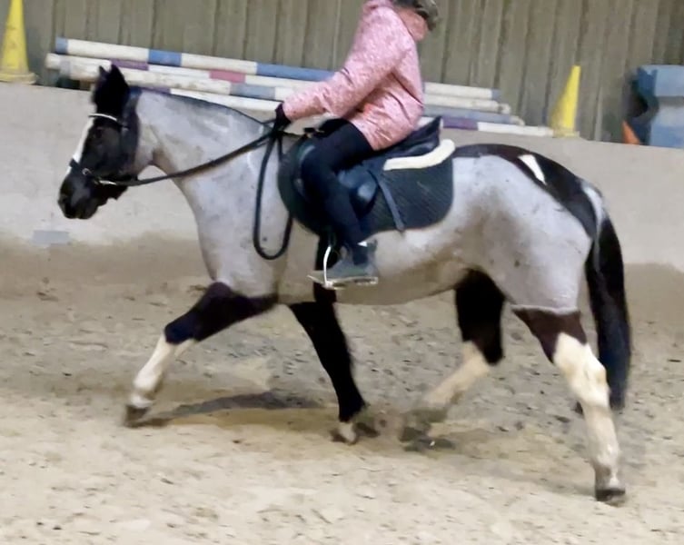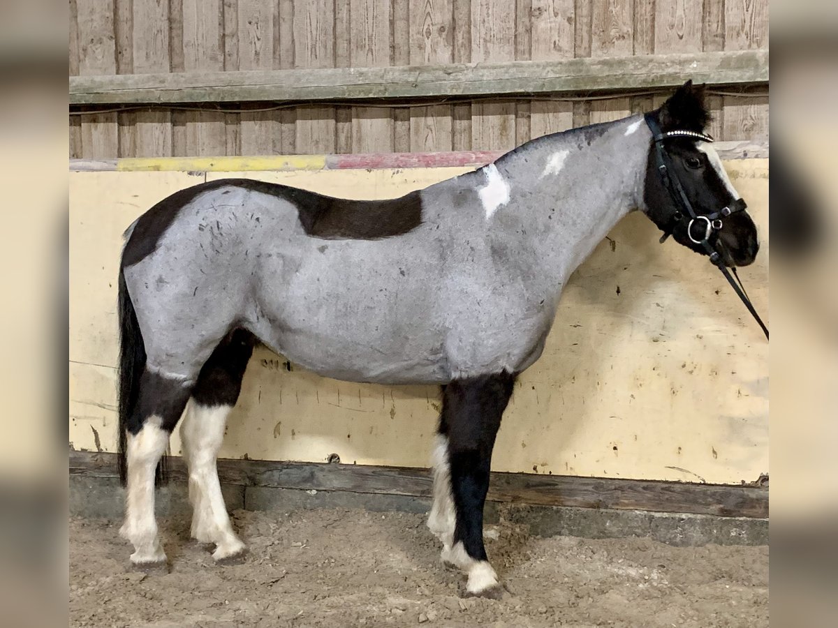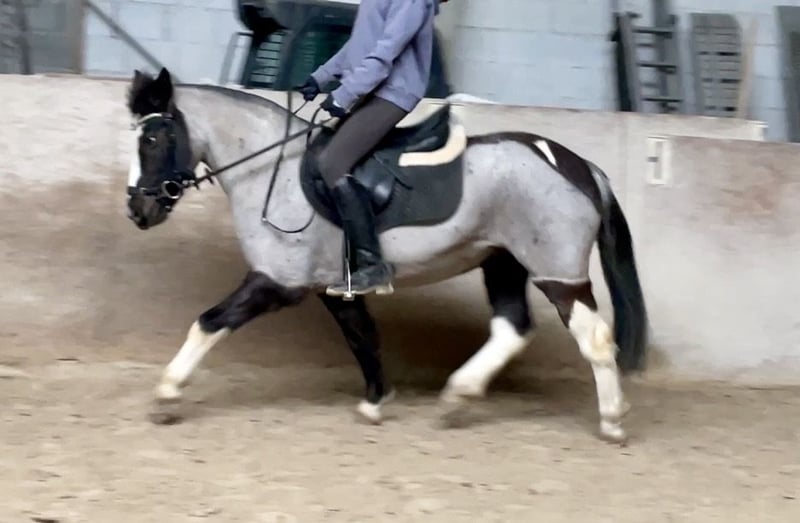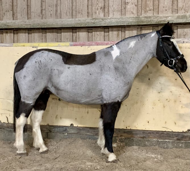 This charming and exceptionally sweet Blue Roan Tobiano mare (13 years old, approximately 13.3 hh) is seeking a new, loving home. She is a true color changer: darker in winter, beautifully silvery-blue in summer – an absolute eye-catcher! Besides her rare color, she impresses most with her incredibly adorable, patient, and resilient nature. She is a pony that immediately touches the hearts of people. ⸻ ❤️ Character – a genuine heart pony • Extremely well-behaved, balanced, and reliable • Friendly, affectionate, and curious • Patient, eager to please, and absolutely gentle in handling • Ideal for children, beginners, and families • Due to her calmness and openness, also suitable as a therapy pony She remains calm in every situation and always strives to do her best. ⸻ 🏇 Training & Use • Well-started under saddle • Absolutely safe to ride bitless • Can be ridden relaxed without a saddle • Calm in the terrain, reliable, and fearless • Very pleasant as a lead pony • No vices, no weaving, no bucking A perfect pony for leisure, family, beginners, or therapeutic work. ⸻ ✂️ Note on current appearance (scar from a cut injury) Due to a cut injury, her mane has been trimmed short. It will grow back naturally. Several photos from summer with a full mane are available – these also show her clear absence of eczema. ⸻ 🩺 Health & Care • Fit and healthy • No eczema, no respiratory issues • Well-behaved at the blacksmith • Suitable for riding and social interactions • Easy to care for and robust Her annual Blue Roan color change is clearly visible and highlights her unique appearance. ⸻ ✨ Special features • Rare Blue Roan Tobiano color • Genuine seasonal color change (lighter in summer, darker in winter) • Incredibly sweet, trusting character • Perfect size for children and small adults ! Priority over price !