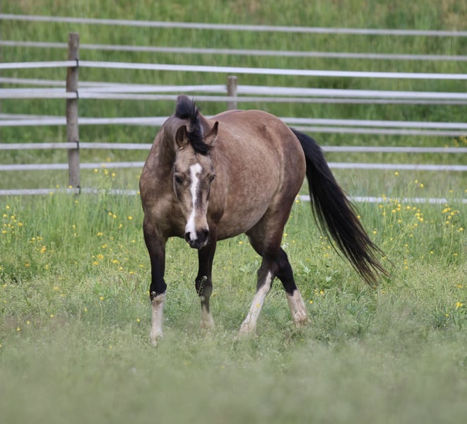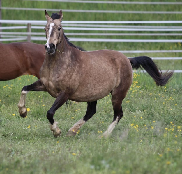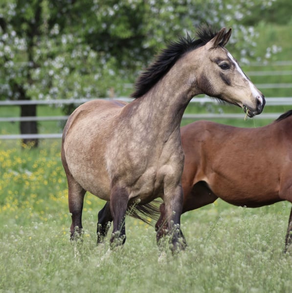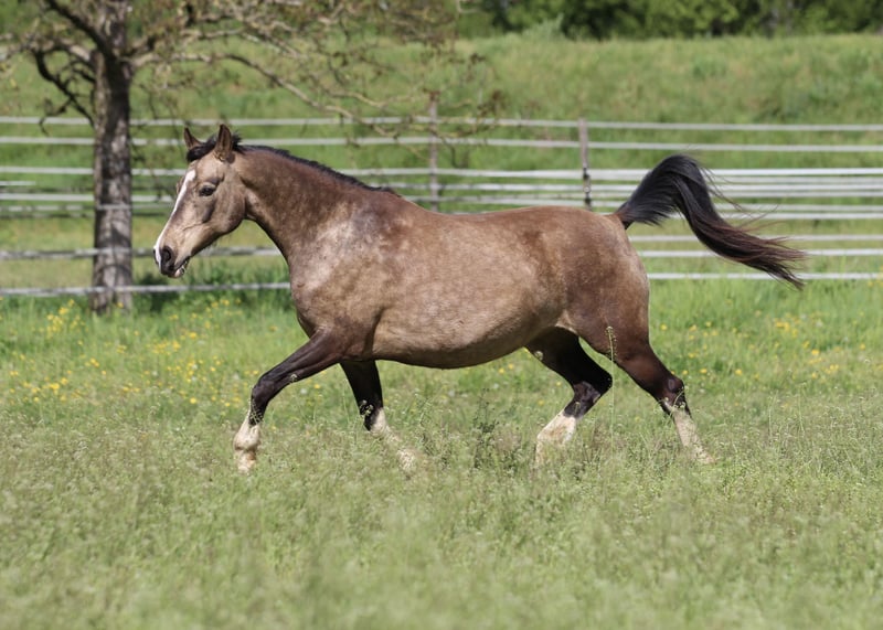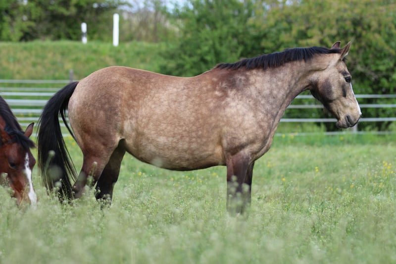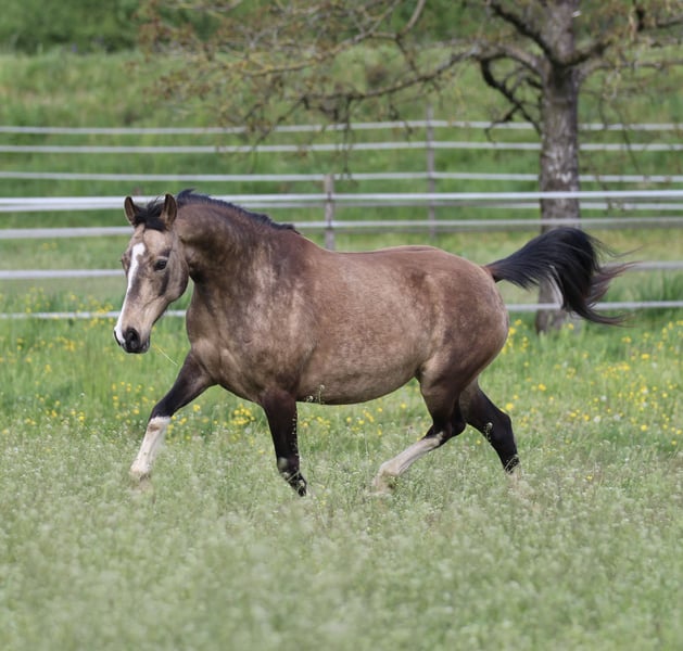 NALA è una bellissima pony di razza tedesca con un'ottima genealogia e in un colore fantastico! Ha energia, è sensibile e ama lavorare. Nala è ben addestrata di base, lavora anche con bambini e adolescenti avanzati durante le lezioni e ama le lunghe passeggiate. Da noi viene addestrata secondo il Natural Horsemanship. Inoltre, sale sul trailer in modo affidabile, è tranquilla per il maniscalco, è vaccinata e sverminata regolarmente e ha avuto il suo primo puledro nel 2023 (disponibile anche in vendita). È stata una madre eccezionale, tutto è andato liscio e senza problemi. Nala è tenuta in un paddock all'aperto robusto in un branco misto. È sana, sicura nei movimenti e facile da gestire e nutrire. In caso di forte infestazione di zanzare vicino a corsi d'acqua, tende a sviluppare un leggero eczema estivo, che può essere trattato bene con una crema. A causa del suo temperamento e della sua sensibilità, non è in vendita a principianti dell'equitazione. Altezza al garrese 1,42 m.