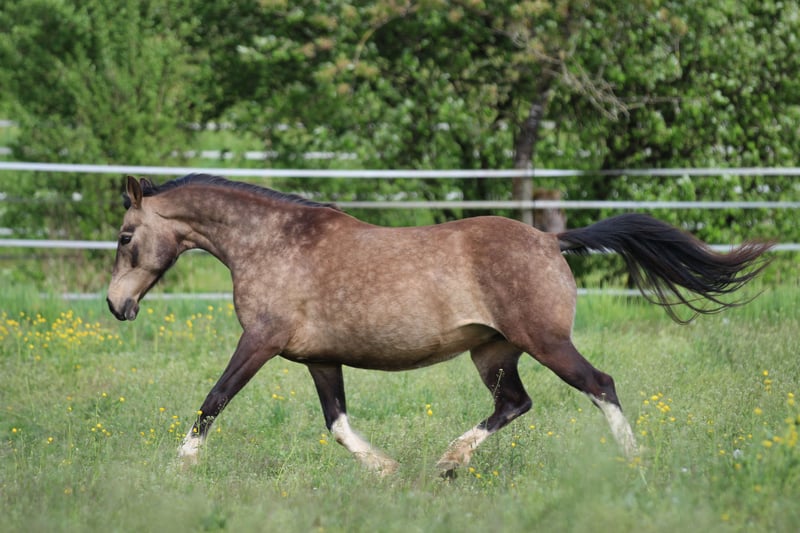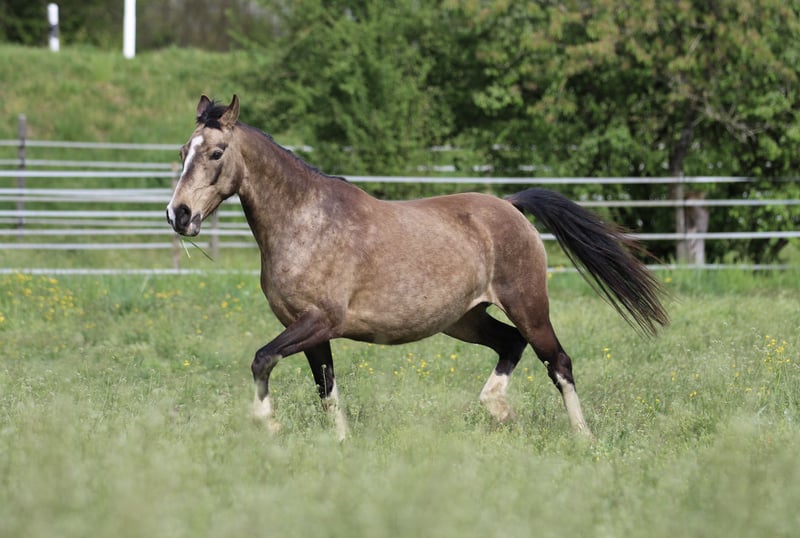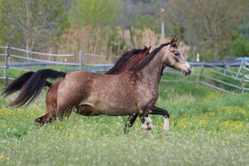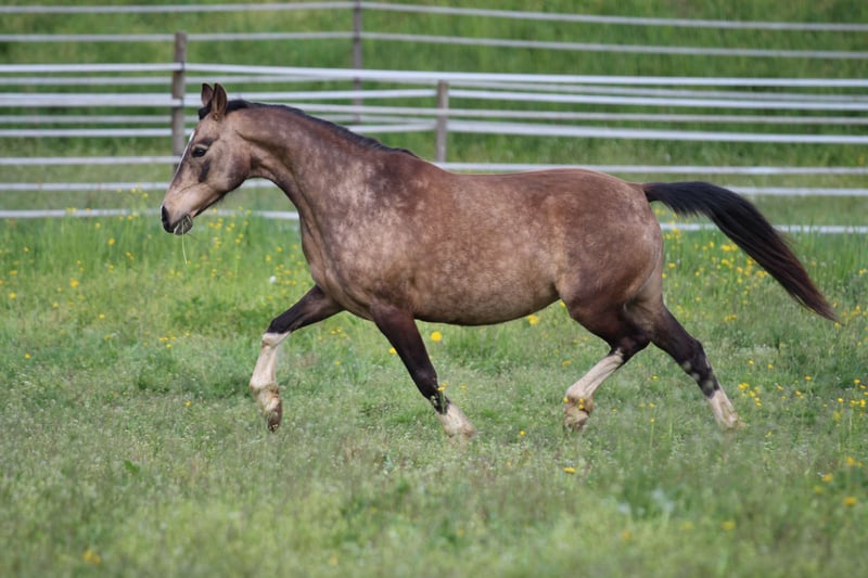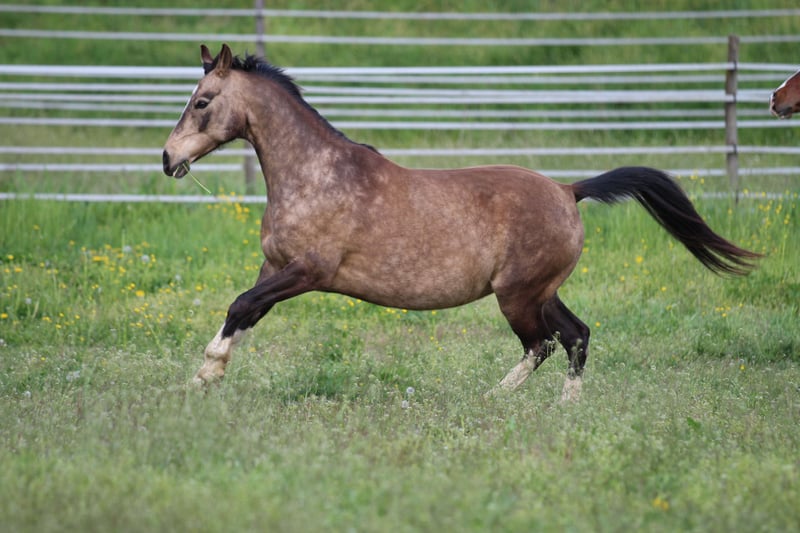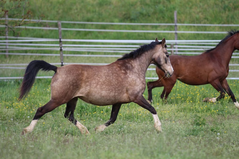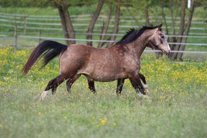 NALA ist eine wunderhübsche deutsche Reitponystute mit sehr guter Abstammung und in toller Farbe! Sie hat Go, ist sensibel und mag es zu arbeiten. Nala ist solide grundausgebildet, läuft auch mit fortgeschrittenen Kindern und Jugendlichen im Unterricht, und liebt lange Ausritte. Bei uns wird sie nach Natural Horsemanship gearbeitet. Außerdem geht sie zuverlässig in den Hänger, ist Schmiedefromm, regelmäßig geimpft entwurmt und hatte 2023 das erste Fohlen (steht auch zum Verkauf) Sie war eine durchweg super Mutter, alles unkompliziert und problemlos verlaufen. Nala wird in robuster Offenstallhaltung in einer gemischten Herde gehalten. Ist gesund, trittsicher und unkompliziert in Haltung und Fütterung. Bei starker Mückenbelastung Nähe Gewässer neigt sie zu leichtem Sommerekzem, welches mit Eincremen gut zu behandeln ist. Aufgrund ihres Temperaments und der Sensibilität nicht an Reitanfänger zu verkaufen. Stockmass 1,42m.