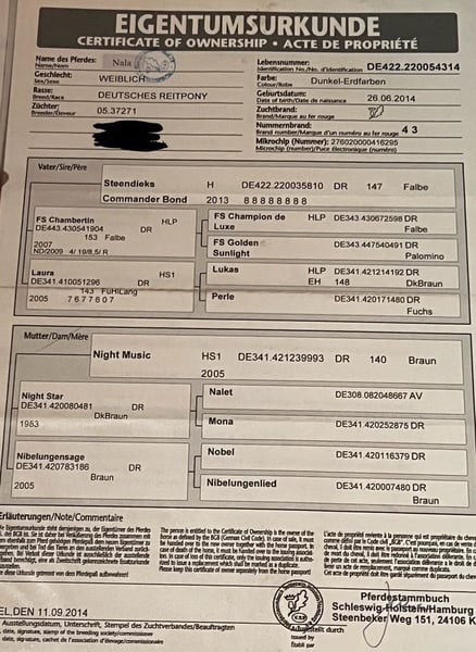 NALA is een negenjarige Duitse rijponymerrie met geweldig papier in prachtige kleur. Ze heeft veel go, is gevoelig en werkt graag. Nala is degelijk opgeleid, liep met gevorderde kinderen en tieners in lessen en houdt van lange ritten. Wij werken volgens Natural Horsemanship. Daarnaast gaat ze betrouwbaar de trailer in, is ze smid vroom, regelmatig gevaccineerd ontwormd en kreeg ze in 2023 het eerste veulen (is ook te koop) Ze was altijd een geweldige moeder, alles verliep ongecompliceerd en zonder problemen. Nala wordt gehouden in een robuuste open stal in een gemengde kudde. De hele zomer stond ze met een kleine groep fokmerries op uitgestrekte natuurgebieden om te genieten van haar tijd als moeder. Inmiddels zijn we na het spenen van het veulen weer begonnen met haar te rijden. Schofthoogte 1.42m.