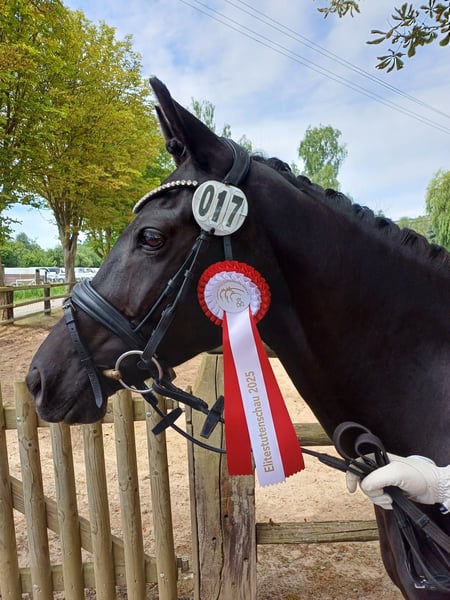 Naomi (*2014) von Popcorn WE x Renoir ist eine sehr hübsche und feine Reitpony-Stute. Sie ist dem Menschen gegenüber immer freundlich und sehr aufgeschlossen. Sie hat noch nie getreten oder gebissen. Im Umgang ist sie ein absoluter Schatz. Naomi ist in unserem Besitz, seitdem sie zweijährig ist. Sie ist in der Dressur auf einem soliden A-Niveau ausgebildet und war mit mir auch bis zur Klasse A auf Turnier unterwegs. Im Training zeigte sie auch Freude bei kleineren Sprüngen. Im Gelände ist sie in der Regel kopfklar - sie kennt es alleine und mit anderen Pferden- , allerdings nicht besonders mutig. Naomi ist sehr sensibel und braucht Sicherheit vom Reiter. Zudem hat sie viel Go. Daher ist sie nicht für Anfänger geeignet. Da ich erst aufgrund der Schule und dann aufgrund meines Studiums weniger Zeit zum Reiten hatte, haben wir unsere Turnierzeit im Jahr 2021 beendet. Stattdessen haben wir Naomi zweimal decken lassen. Sie hat zwei gesunde, großrahmige und hübsche Stutfohlen (*2022 und *2024), welche auch bei uns besichtigt werden können, nach unproblematischer Trächtigkeit zur Welt gebracht. Sie erwies sich als sehr liebevolle Mutter. Nach ihren beiden Fohlen habe ich sie nur noch sporadisch geritten. Für die Zucht ist sie besonders interessant, da sie laut Gentest reinerbig schwarz ist. Naomi hatte nie gesundheitliche Probleme. Allerdings ist sie auf ihrem rechten Auge stark sehbeeinträchtigt (fast blind) wegen einer Netzhautablösung - vermutlich aufgrund eines Traumas im Fohlenalter. Sie hat im Alltag dadurch keine Einschränkungen. Allerdings ist sie in fremden Umgebungen etwas unsicher und gestresst. Naomi ist regelmäßig geimpft und entwurmt. Derzeit läuft sie barhuf, war aber zeitweise auch schon vorne beschlagen. Tagsüber geht sie bei uns in einer kleinen Stutenherde aufˋs Paddock oder im Sommer auf die Koppel. Sie ist zwar eher dominant in der Rangordnung, aber dennoch sehr verträglich mit den anderen Pferden. Nachts steht sie in der Box. Da sie im Moment nicht mehr regelmäßig von mir geritten wird, da es mir aufgrund meines Studiums einfach an Zeit fehlt, ist ein Probereiten nur bedingt möglich! Daher verkaufen wir sie als Zuchtstute! Zudem ist Naomi aufgrund ihres feinen Körperbaus kein Gewichtsträger. Ich werde Naomi nur in die besten Hände abgeben! Kein Schulbetrieb und keine Händler! Platz vor Preis! Für Nachfragen stehe ich gerne zur Verfügung. Bitte Nachricht an 016095851045. Unseriöse Anfragen werden ignoriert!