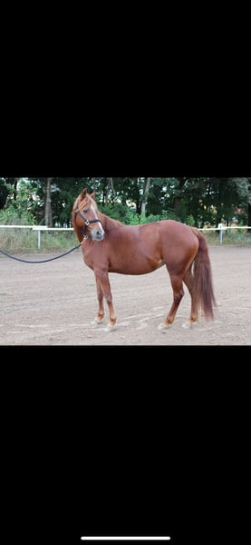 Schicke pony stute Drp x welsh D 12 jährig 1,43cm Geht super gerne ins gelände alleine sowie auch in der Gruppe Macht gerne freiarbeit und bodenarbeit Kann viele Kunststücke Flottes und fittes pony War noch nie krank bei mir Barhuf Kennt reitplatz und Halle braucht aber hier beim Reiten noch Förderung Kein Anfänger oder Kinderpony