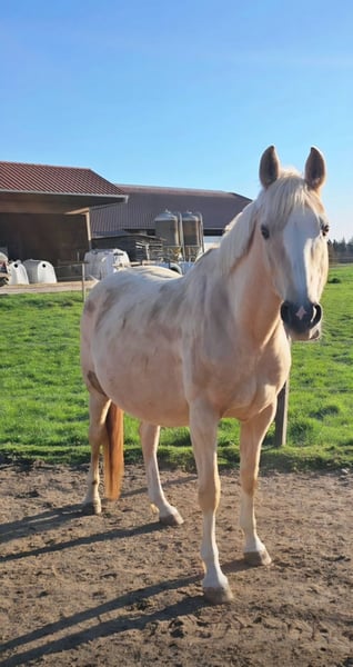 Wegen aufgabe meiner Hobbyzucht, sucht dieser bildschöne 13 Jahre alte Stute ein neues Zuhause. Sie ist aktuell tragend und fohlt Ende April ab. Umziehen könnte sie natürlich erst nach Absetzen des Fohlens im November. Da sie eine Hufknorpelverknöcherung hat, ist sie nur bedingt reitbar. Bei mir lief sie immer recht gut und in den "Zuchtfreien" Jahren ist sie auf dem Platz locker gymnastiziert worden und war im Gelände alleine sowie in der Gruppe unterwegs. Sie hat beim besamen immer zuverlässig aufgenommen und ist eine hervorragende Mutter. All ihre Fohlen sind prämiert, teilweise sogar goldprämiert. Sie könnte nach dem abfohlen mit dem Wunschhengst besamt werden. Für weitere Infos gerne melden.