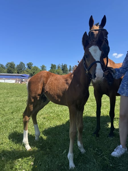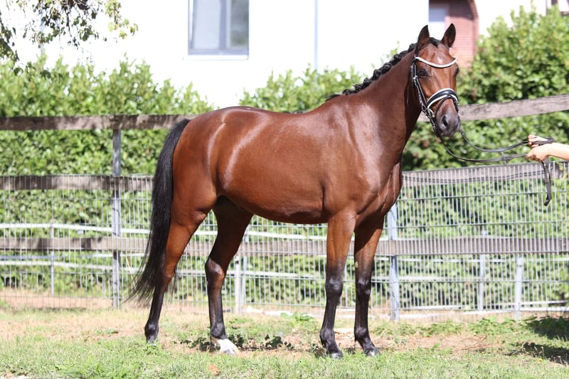 Zum Verkauf steht unsere Ponystute. Sie hat bei uns ein herausragendes Hengstfohlen zur Welt gebracht, welches als Goldfohlen prämiert wurde (siehe letztes Bild). Sie selber hat tolle Grundgangarten, weshalb sie für die Zucht weiterhin auch sehr interessant ist, da sie die Gänge an ihre Nachkommen weitergibt. Auch als Freizeitpony könnte ich sie mir gut vorstellen, da sie gerne ins Gelände geht. Bei Interesse gerne anrufen.