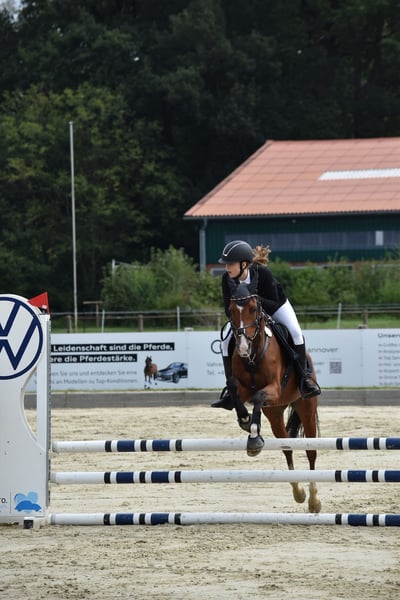 Gida ist eine 13-jährige Ponystute mit einem Stockmaß von 1,48 cm und einem besonders hübschen Erscheinungsbild. Sie ist turniererfahren und wurde von unseren Kindern in der Dressur und vor allem im Springen vorgestellt. Im Parcours zeigt sie sich stets motiviert und verfügt über eine gutes Grundtempo, mit dem sie auch von Kindern leicht durch den Parcours zu reiten ist. Sie ist ein absolutes Verlasspony, ob auf dem Platz, in der Halle, im Gelände oder in fremder Umgebung, sie ist immer gut zu handeln. Gida kennt auch das Reiten mit Halsring und ohne Sattel. Sie lässt sich besonders einfach verladen. Im Moment ist sie nachts in der Box und tagsüber auf dem Paddock. Sie kann ebenso problemlos auf der Weide stehen und ist sehr verträglich mit anderen Pferden. Da unsere Tochter aus ihr herausgewachsen ist, suchen wir für Gida ein neues, liebevolles Zuhause. Melden sie sich bitte unter der Nummer 015229539787.