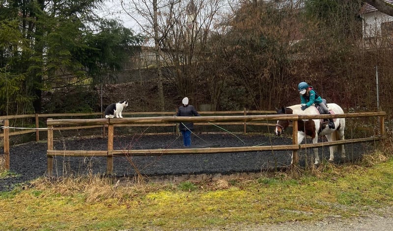Nachdem ich hier im Winter mit meiner Verkaufsanzeige kein passendes Match für mein Pony gefunden habe, hatte ich die Anzeige gelöscht und meine Stute in den letzten 3 Monaten einer Reitlehrerin zur Verfügung gestellt. Sie hat mein Pony gut trainiert und wird auch bis zu einem Verkauf weiter mit ihr arbeiten (4 - 5 mal/Woche). In dieser Zeit gab und gibt die Trainerin neben der Bodenarbeit auch Kindern Reitunterricht auf meinem Pony. Das macht mein Pony ganz wunderbar, sehr brav und meine Stute ist dabei sehr auf die Kommandos der Reitlehrerin konzentriert. In dieser Konstellation – ReitlehrerIn + SchülerIn – ist mein Pony in der Reithalle motiviert dabei. In einem regulären Schulbetrieb sehe ich sie allerdings nicht. Warum verkaufe ich dieses tolle Pferd? Ich reite ungern allein aus und habe zu wenig Gelegenheiten für gemeinsame Ausritte. Da mein Pony einen sehr entspannten Charakter hat und ich selbst auch ein ruhiger Typ und dazu eine eher schwache Reiterin bin, funktioniert es mit uns leider in der Reithalle nicht gut. Für meine liebe Endmaß-Ponystute (2012, 148 cm) suche ich daher das passende Match. Mein Pony ist denke ich eher der Draußen-Abenteuer-Typ, aber eine Reiterin, die eine aktive Energie mitbringt, wird auch in der Halle oder auf dem Platz viel Spaß mit ihr haben. Im Gelände und Straßenverkehr ist sie unerschrocken, läuft in der Gruppe total brav (allein habe ich es noch nicht versucht) und meistert Hindernisse souverän (u. a. Extreme Trail). Auch im Umgang ist sie sehr brav, unkompliziert bei der Hufbearbeitung und beim Verladen, passt gut auf den Reiter auf und mag Bodenarbeit wie Doppellonge und Equikinetik. Sie lebt bei mir seit 2021 im Offenstall in gemischter Herde und fühlt sich dort sehr wohl, sie ist rangniedrig. Es ist mir wichtig, dass sie auch künftig in einem guten Offenstall o. ä. mit möglichst ganztägig Auslauf und Bewegungsmöglichkeit lebt. Sie ist leichtfuttrig, also wäre zeitgesteuerte/begrenzte Heufütterung und begrenzter Weidegang (oder mit Fressbremse/Maulkorb) ideal. Das ist kein Notverkauf. Anfragen von Händlern, normalen Reitschulen oder Interessenten ohne Nachweis einer Offenstallhaltung o. ä. sind zwecklos. Kurzinfos zu meinem Pony: - Dt. Reitpony, Stute, geboren Mai 2012, als Saugfohlen prämiert, L.St. S1 (DR) - Stockmaß 148 cm - Sie ist sehr lieb im Umgang, kein Beißen, Steigen, Buckeln oder Durchgehen - Sie ist sehr geduldig beim Putzen, Hufe geben etc. - Sie ist sehr geduldig bei der Hufbearbeitung – sie braucht Hufschutz! Zurzeit Duplo-Klebebeschlag - Hänger fahren auch allein kein Problem - Sie ist leichtfuttrig - Offenstall-Haltung ist Bedingung. Eine Kombination mit Unterbringung in der Box für die Nacht und viel Auslauf (mehr als ein kleiner Paddock!) für den Rest des Tages ist je nach Konzept evtl. denkbar. - Sie ist in der Herde rangniedrig, geht Konflikten aus dem Weg. - Regelmäßig entwurmt und geimpft, hierbei immer total gelassen. - Letzter Zahnarzttermin am 03.12.2025 Inkl. Trense, Lederhalfter, Knotenhalfter und 3 Decken (100, 50, 0). Der Sattel kann für 500,- € dazu gekauft werden. Um Reittourismus vorzubeugen Probereiten nur gegen 35 € Gebühr (Verrechnung bei Kauf)