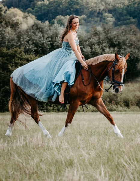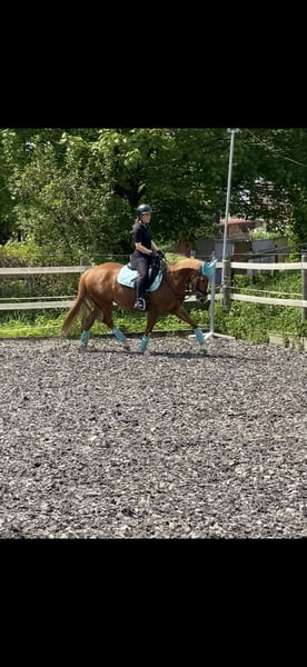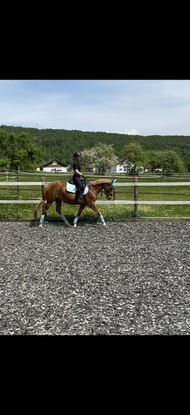 Braves Endmaß-Pony mit Herz und Verstand! Zum Verkauf steht ein ausgesprochen zuverlässiges und gut erzogenes Endmaß-Pony, das mit seinem ausgeglichenen Wesen und seiner angenehmen Art sowohl im Alltag als auch im Training überzeugt. Meine Fuchsstute Lorelei (15 Jahre) sucht ein neues Traum zu Hause. Mit ihren 4 weißen Beinchen und blonder Mähne, sowie 3 tollen GGA überzeugt sie optisch in jeder Hinsicht. Aber auch charakterlich lässt sie keine Wünsche offen. Sie ist total unerschrocken, brav im Umgang, äußerst gutmütig - daher auch für Anfänger geeignet, da sie auch Fehler verzeiht. Treten, steigen, beißen sind für sie kein Begriff. Sie ist eine echte Lebensversicherung und war auch damals für mich als Neueinsteiger in den Reitsport ein wahrer Lehrmeister. Sie lief in der Vergangenheit sowohl Dressur A/L Niveau als auch Vielseitigkeit, daher geht sie auch total brav ins Gelände - ob alleine oder in der Gruppe. Lore läuft Barhuf und ist verladefromm. Sowohl Hufschmied, Laufband als auch Hänger fahren ist für sie kein Problem. Lore ist eher rangniedrig und kennt sowohl Boxenhaltung, als auch tagsüber (in einer 8-köpfigen Herde) Offenstallhaltung mit täglichem Koppelgang. **Bei ernsthaftem Interesse** freuen wir uns über eine Nachricht. Videos und Probereiten nach Absprache möglich. Platz vor Preis!