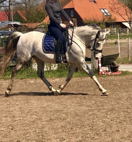 Unsere Schimmelstute sucht leider aufgrund privater Veränderungen ein neues Zuhause. Sie ist eine absolut treue Seele, menschenbezogen, brav und verlässlich - ob im Umgang mit Kindern, im Gelände oder sogar in der Reittherapie. Mehrere Monate stand sie für therapeutisches Reiten zur Verfügung. Unter dem Sattel ist sie ein echter Allrounder: Dressur wie Springen bis A- Niveau mit Potenzial nach oben. Für Familien, Jugendliche oder Reiter, die ein sicheres und liebenswertes Freizeitpony suchen, ist sie eine ideale Begleiterin. Darüber hinaus ist sie eine eingetragene Zuchtstute und hat bereits zwei Fohlen problemlos großgezogen. Damit bietet sie auch für kleine Züchter oder Pony-Liebhaber, die Zucht und Freizeit kombinieren möchten, interessante Möglichkeiten. Gesundheitlich möchten wir offen sein: Sie hat eine Allergie, die sich in leichtem Asthma äußert. Mit täglicher Bewegung und staubarmer Haltung kommt sie damit sehr gut zurecht. Sie bekommt bei uns ganz normales Heu. Diese Besonderheit schränkt sie nicht in ihrer Lebensfreude ein, sollte aber im neuen Zuhause berücksichtigt werden. Mit ein wenig Geduld und Liebe hat man ein wunderbar zuverlässiges, vielseitiges Pony an seiner Seite, das sowohl im Freizeit- als auch im Zucht-oder Therapiebereich glänzen kann.