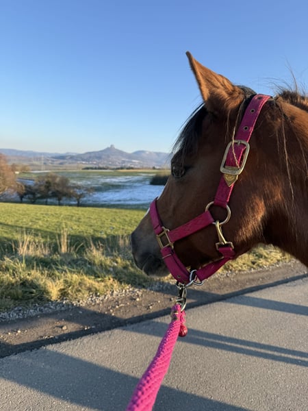 Flicka ist eine intelligente und sensible Stute, die einen einfühlsamen und klar kommunizierenden Menschen an ihrer Seite sucht. Sie überzeugt durch ihr feines Gespür und ihre Aufmerksamkeit – Eigenschaften, die sie zu einer besonderen Partnerin machen. Flicka wird gebisslos geritten und reagiert fein auf Hilfen, weshalb sie besonders für Reiter geeignet ist, die Wert auf eine sanfte und harmonische Kommunikation legen. Auch in der Bodenarbeit ist Flicka gut ausgebildet und macht gerne Freiarbeit, Seitengänge usw. Ins Gelände geht sie in der Gruppe und alleine. Flicka sucht ein liebevolles Zuhause, in dem man ihre Sensibilität zu schätzen weiß. Wer eine kluge und treue Partnerin sucht, wird in ihr ein ganz besonderes Pferd finden. Tierärztlich gibt es keine Befunde, sie läuft bisher Barhuf und kommt damit prima zurecht. Ich könnte mir Flicka auch sehr gut in der Zucht vorstellen da sie bereits 2 wunderschöne Fohlen hatte. Ebenfalls ist sie herdenverträglich sowohl in gemischter als auch Stutenherde.