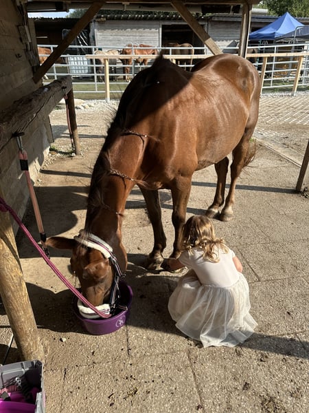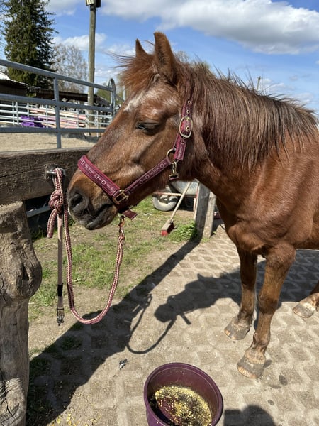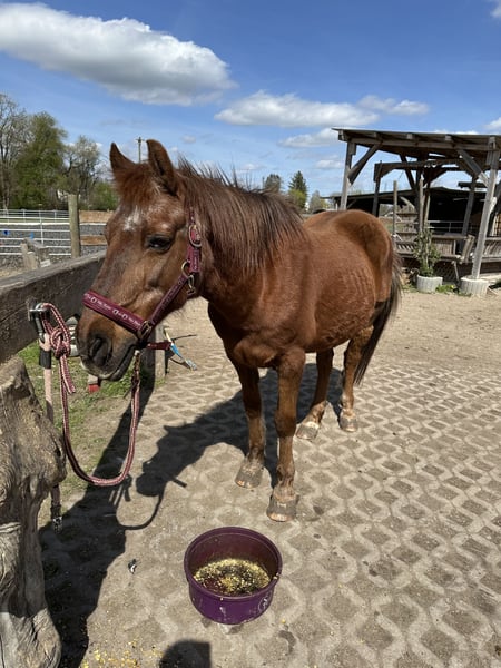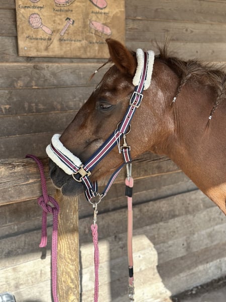 Schweren Herzens suchen wir für unsere 19-jährige Ponystute „Jane“ ein neues, liebevolles Zuhause. Jane ist seit knapp einem Jahr bei uns und hat sich in dieser Zeit als absolut zuverlässiges, ruhiges und menschenbezogenes Pony gezeigt. Sie ist super brav im Umgang, ausgeglichen und war zuvor viele Jahre als Schulpferd im Einsatz – daher kennt sie den Umgang mit Reitanfängern und Kindern sehr gut. Mit ihrem Stockmaß von ca. 143–145 cm ist sie ein ideales Pony für Groß und Klein. ⸻ Charakter & Haltung • sehr lieb, ruhig und ausgeglichen • absolut kinderlieb und anfängergeeignet (im Umgang) • kennt Offenstallhaltung in gemischter Stutenherde • rangmittig und sozial verträglich ⸻ ⚠️ Gesundheitlicher Hinweis Leider ist nach einem Ausritt eine Lahmheit (vermutlich im Kniebereich) aufgetreten. • Ursache aktuell nicht eindeutig geklärt (Trauma o.ä. möglich) • bereits zweimal tierärztlich behandelt (u.a. Hyaluron & Cortison) • aktuell nicht reitbar (lahm in Trab & Galopp) • seit Januar 2026 nicht mehr geritten und wird geschont Eine vollständige Genesung ist nicht ausgeschlossen – ggf. wäre auch eine weiterführende Behandlung/Operation denkbar. ⸻ Wen wir suchen Für Jane wünschen wir uns ein liebevolles Zuhause als Beistellpferd oder für einen ruhigen Altersplatz. Sie hat es nach ihrem Einsatz als Schulpferd absolut verdient, noch viele schöne Jahre in entspannter Umgebung zu verbringen. ⸻ Weitere Infos • Standort: München / Lochhausen • Abgabe inkl. Zubehör möglich • Tierarztunterlagen und Rechnungen können selbstverständlich eingesehen werden ⸻ Wir wünschen uns für Jane einen Platz, an dem sie wertgeschätzt wird und einfach „Pony sein“ darf. Bei ernsthaftem Interesse freuen wir uns über eine liebe Nachricht.