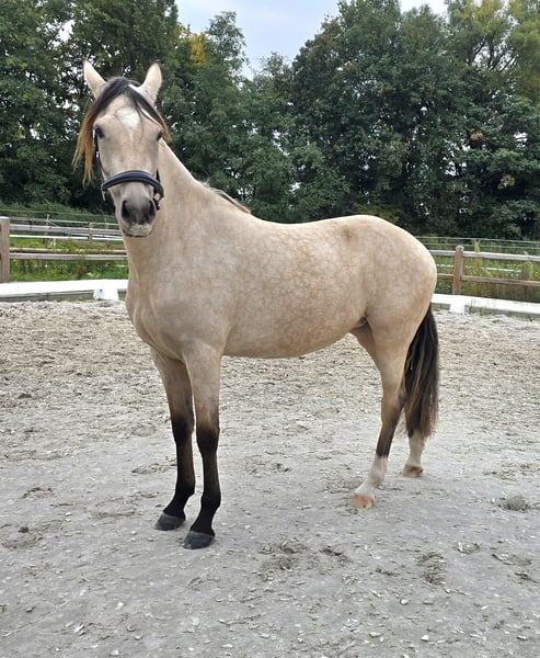 Unsere Clara ist eine sehr liebe und ausgeglichene Stute. Sie ist sehr umgänglich und liebt es gekuschelt zu werden. Sie ist seitdem Absetzen bei uns, hat eine liebevolle Aufzucht mit bestem Futter und immer ausreichend Platz zur Bewegung gehabt, Winter sowie Sommer. Wurmkuren und Schmied wurden selbstverständlich regelmäßig durchgeführt. Ich wünsche mir für Clara liebevolle Menschen, die Sie sportlich ausbilden und fördern. Sie hat gute GGA, schön lang im Rücken, sehr korrekt, stabiles Fundament, top Hufe und dazu noch wunderschön. 😊 Das Pedigree spricht für Vererbung und Rittigkeit. (siehe Dokument) Mit so einem liebevoll, abgeklärten Charakter kann sie nur nach entsprechender Ausbildung auch ein verlässliches Kinderpony werden. Bei ernsthaftem Interesse gerne melden und wir vereinbaren einen Termin zum Kennenlernen. Wir verkaufen keine Tiere an Händler oder an Schulbetriebe.