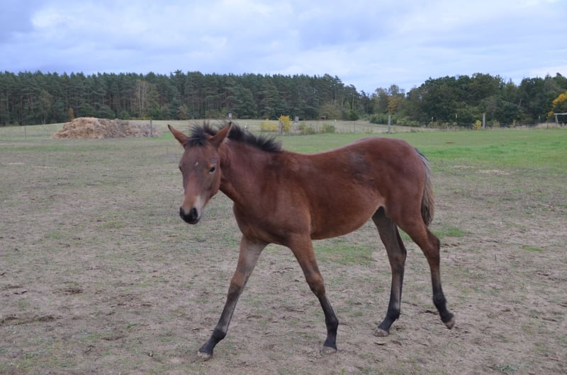 Kostal "Scarlett" was born on April 29, 2024, on our farm. She is sired by the riding pony stallion "D-Power AT" and our mare Kostal "Foxy." Breed: Riding Pony Gender: Mare Age: 1 year Color: Bay Usage: Leisure Breeding Dressage Directly from the breeder Description: Scarlett is from our own breeding and is growing up in a species-appropriate environment with other foals and yearlings. She is a lively, curious foal and is already familiar with trailer loading and has been introduced to the farrier. She is growing up in our herd, in an open stable with an adjacent paddock. Additionally, she has good contact with people and is halter-trained. Negotiable price: 4000.00 Euros We also have other ponies of various ages for sale.