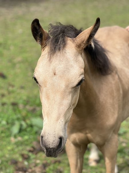 Pony Champony Stute Fohlen Sprinpony Springpferd Buckskin Mescal