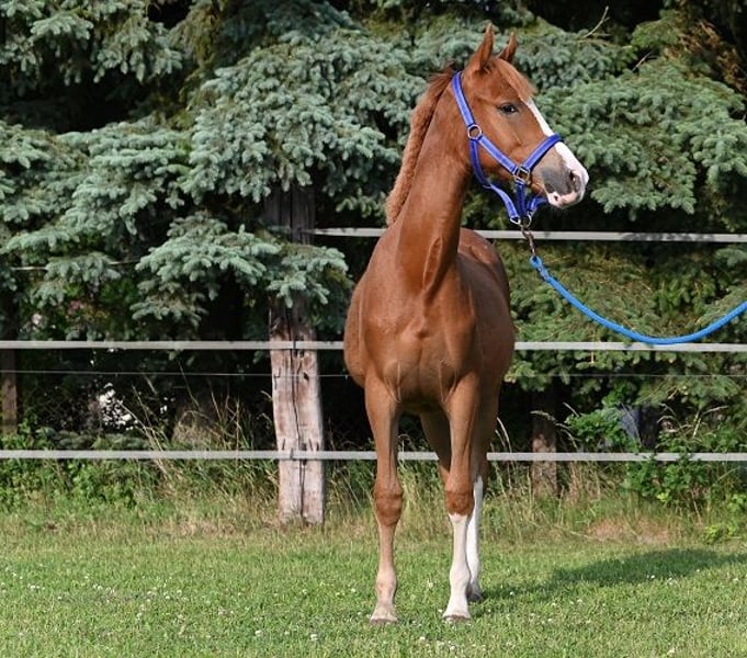 We are selling our riding pony mare "Nikita" (*2024). She is sired by the champion stallion "Neverland WE". Her dam "Wild Rose" is a state premium mare and winner of her mare performance test, and she is sired by "BKS White Light" and "Tassilo" (Welsh B). From this mare line, many successful championship foals and state premium mares have already been bred. If you are interested, please contact us only by phone, SMS, or WhatsApp at 0049 1725488966.
