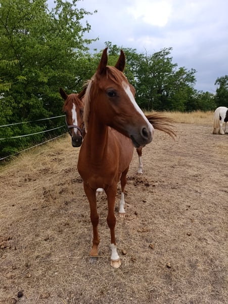 Elegante deutsche Reitpony-Stute, geboren im Jahr 2024, mit wunderschönem Fuchsfell. Diese vielversprechende Nachwuchshoffnung besticht durch ihre ansprechende Erscheinung und ihr vielversprechendes Temperament. Sie wurde bereits liebevoll vorbereitet und zeigt eine vielversprechende Grundausbildung. Dank ihrer robusten Konstitution und ihrem ausgeglichenen Wesen ist sie ideal für ambitionierte Nachwuchsreiter oder Reitpferdezüchter, die Wert auf Qualität und Charakter legen. Eine tolle Gelegenheit, ein junges,dressurgezogenes Reitpony mit großem Potenzial in die Zukunft zu begleiten. Sehr guter Abstammungsnachweis die Mutter und Halbschwester können vor Ort auch besichtigt werden. Wir freuen uns auf ein Kennenlernen.